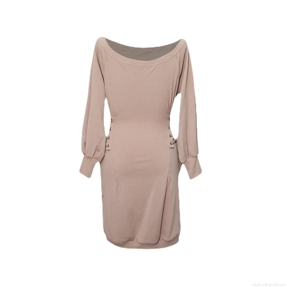 Women's Off Shoulder Ribbed Knit Mini Dress Sexy Long Sleeve Side Lace Up Waist Bodycon Party Club Dress Elegance Bodycon Slim Fit Knitwear Short Dress