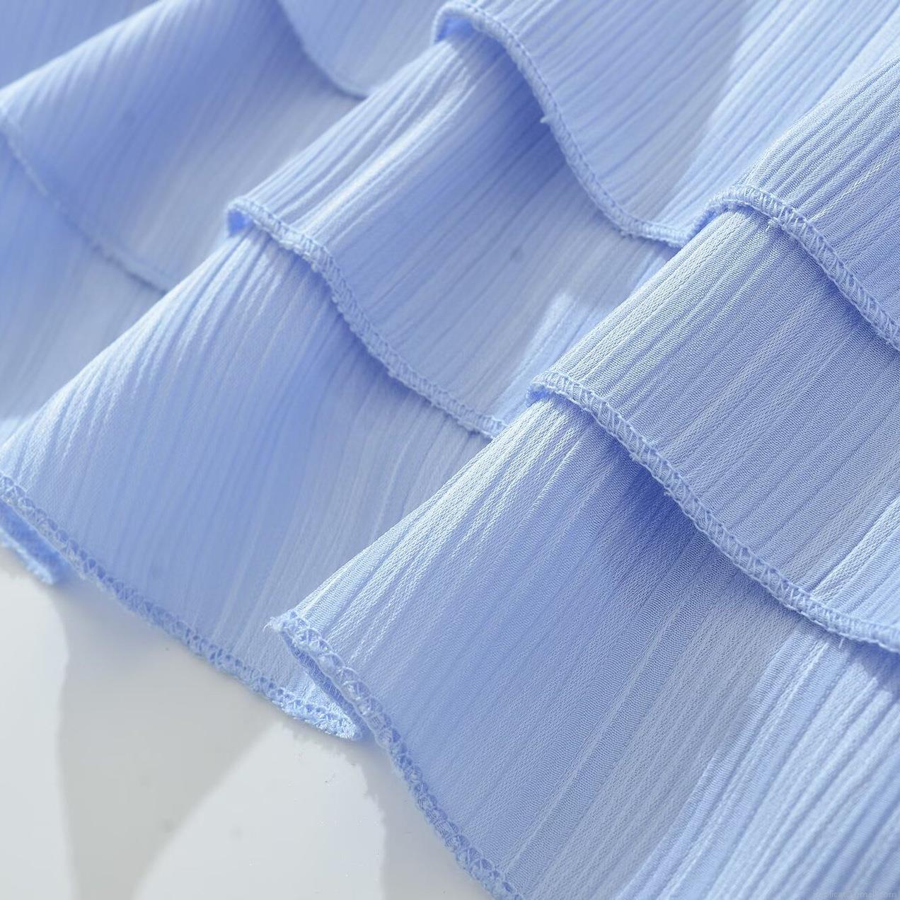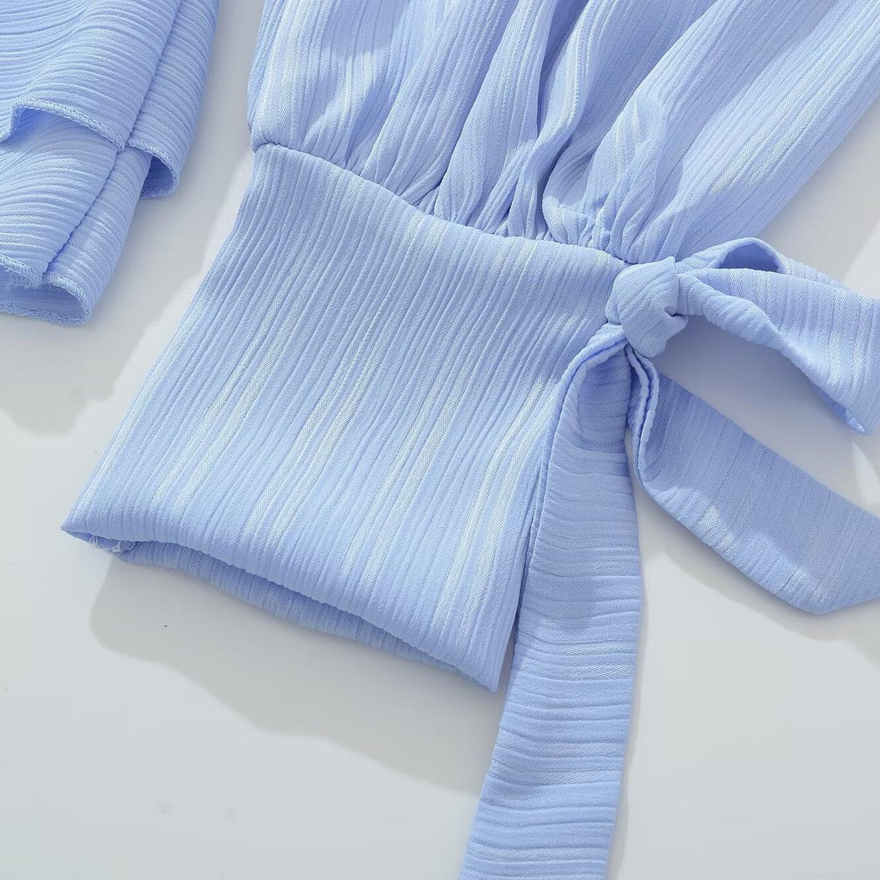 Solid Color, Bow, Ruffles, Off-shoulder, Vertical Texture, Pleated Waist