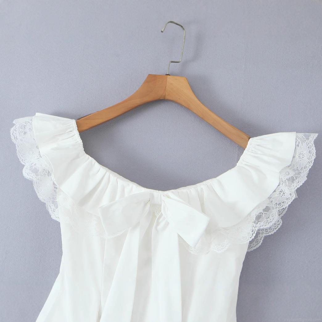 Solid Color, Splice, Lace, Bow, Off-shoulder, Flying Sleeves