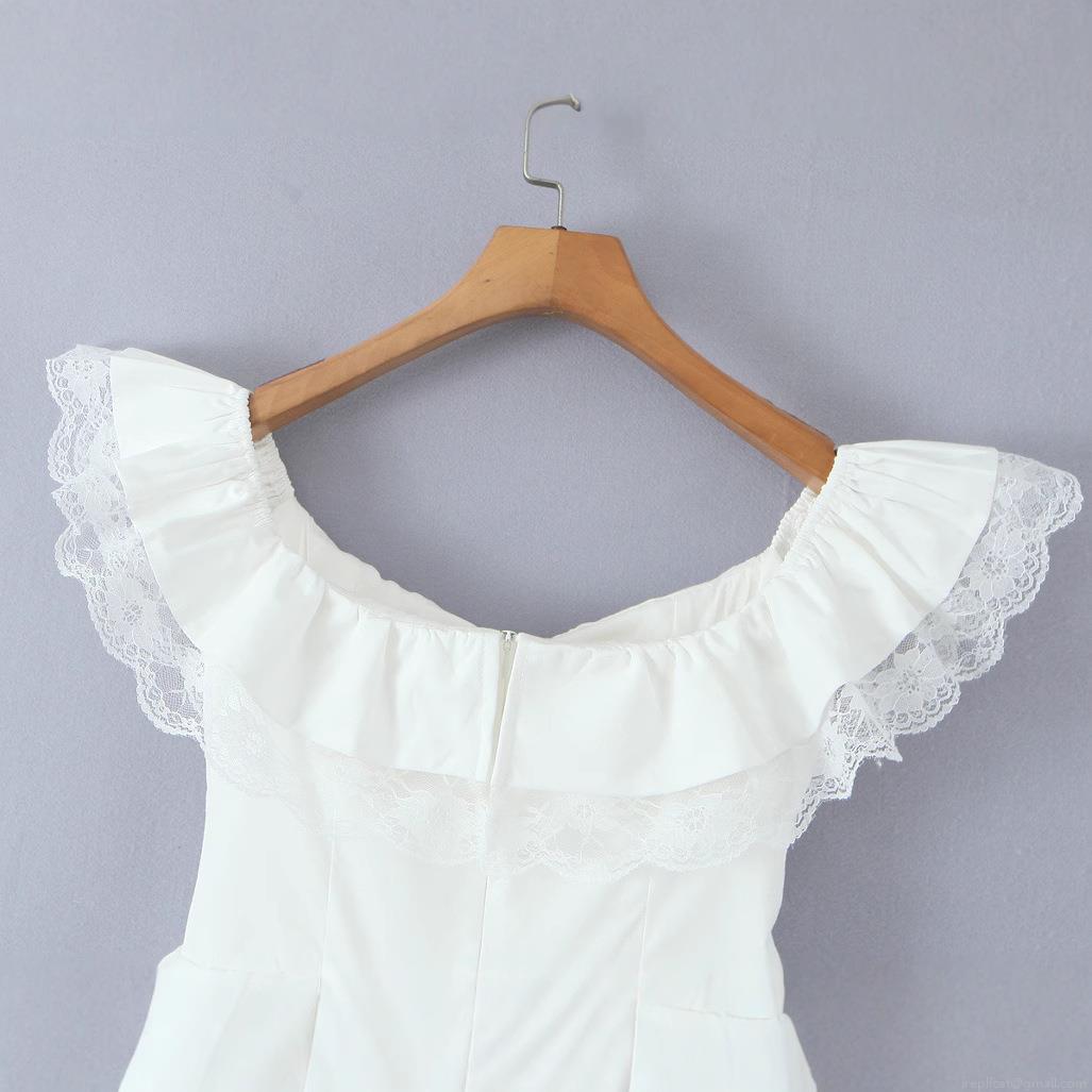 • Women's Off-Shoulder Lace Trim Mini Dress Sweet Butterfly Bowknot Sleeveless A-Line Dress French Style Summer Party Clubwear