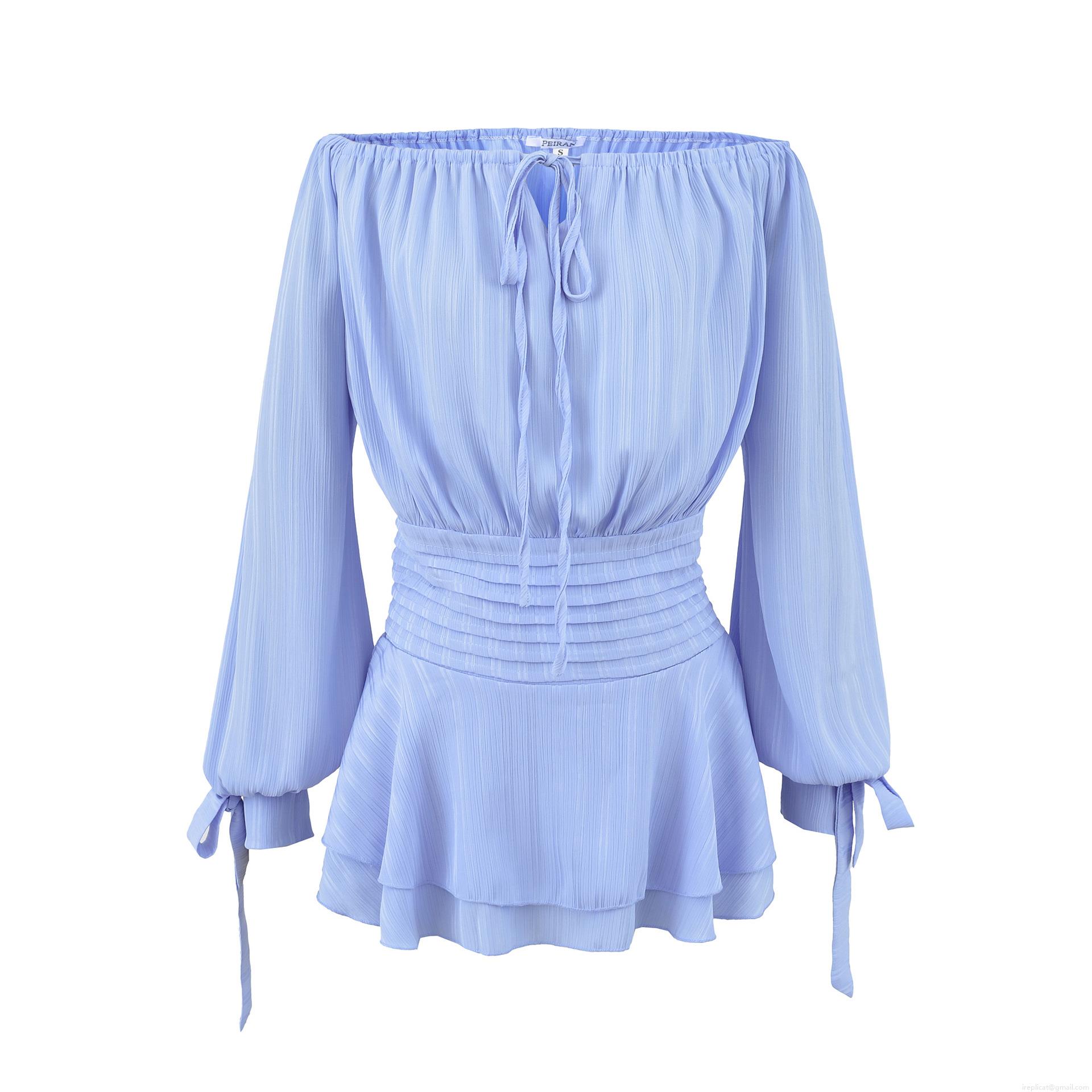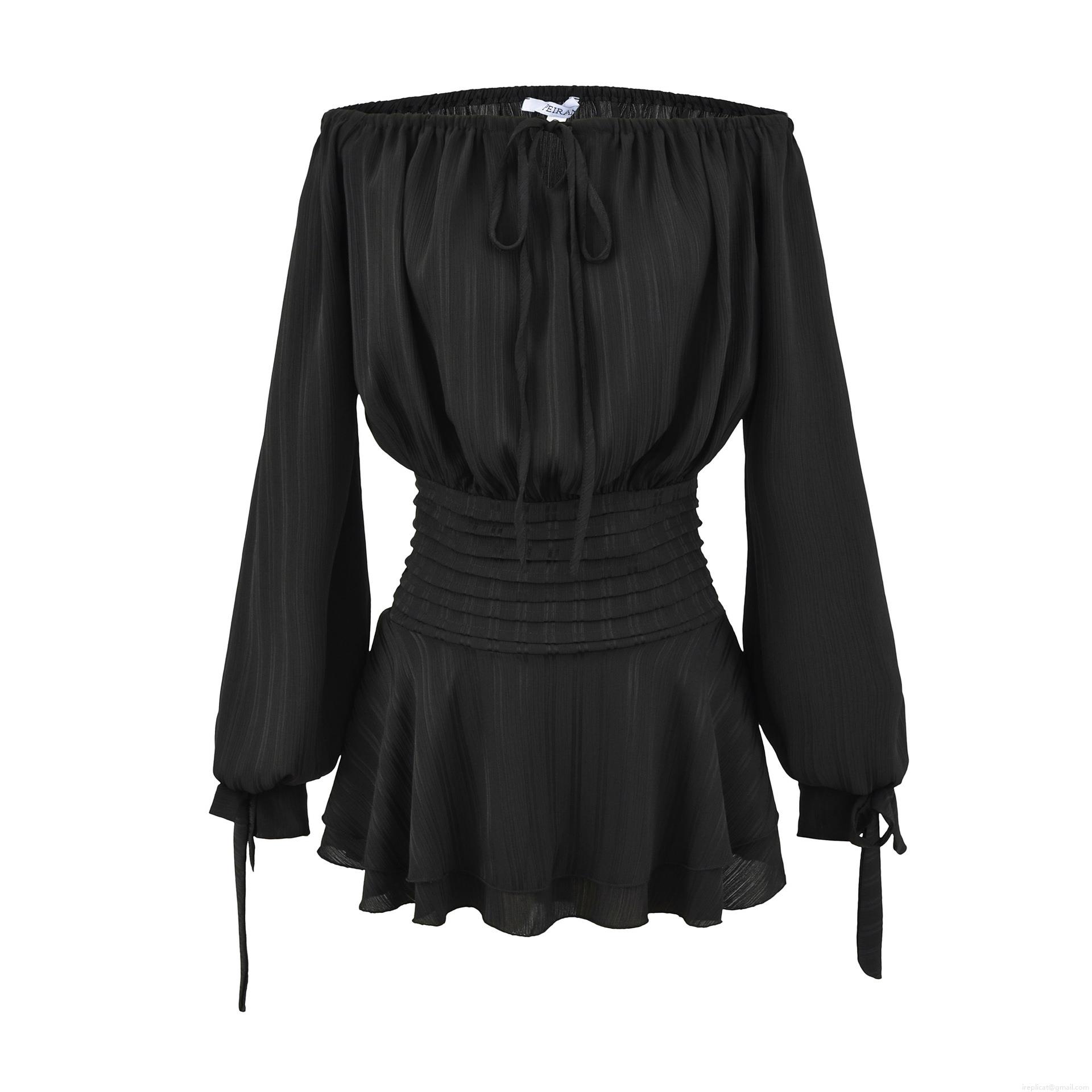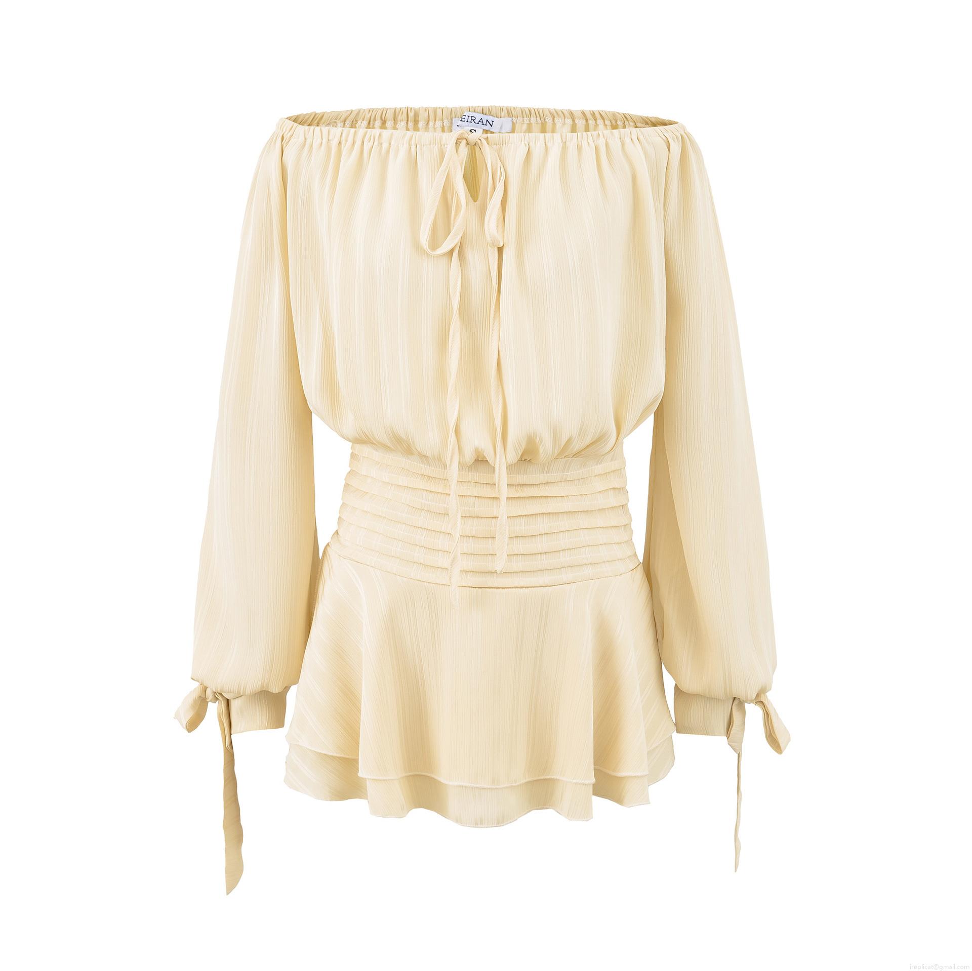 • Women's Off-Shoulder Lantern Sleeve Mini Dress Elegant Shirred Waist Ruffle Hem Solid Color Chiffon Texture Long Sleeve Short Dress For Party Dating Summer Casual
