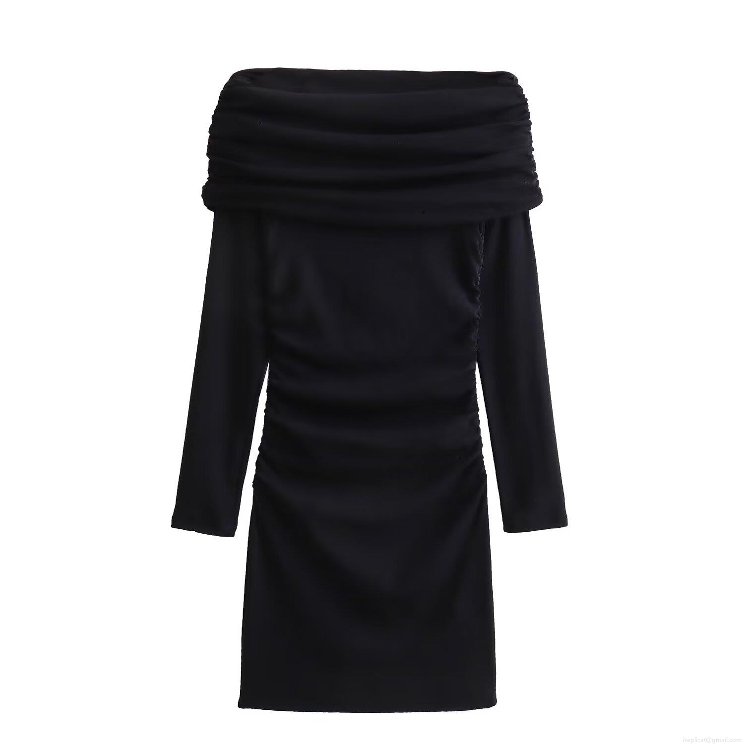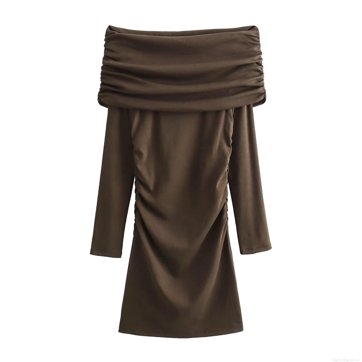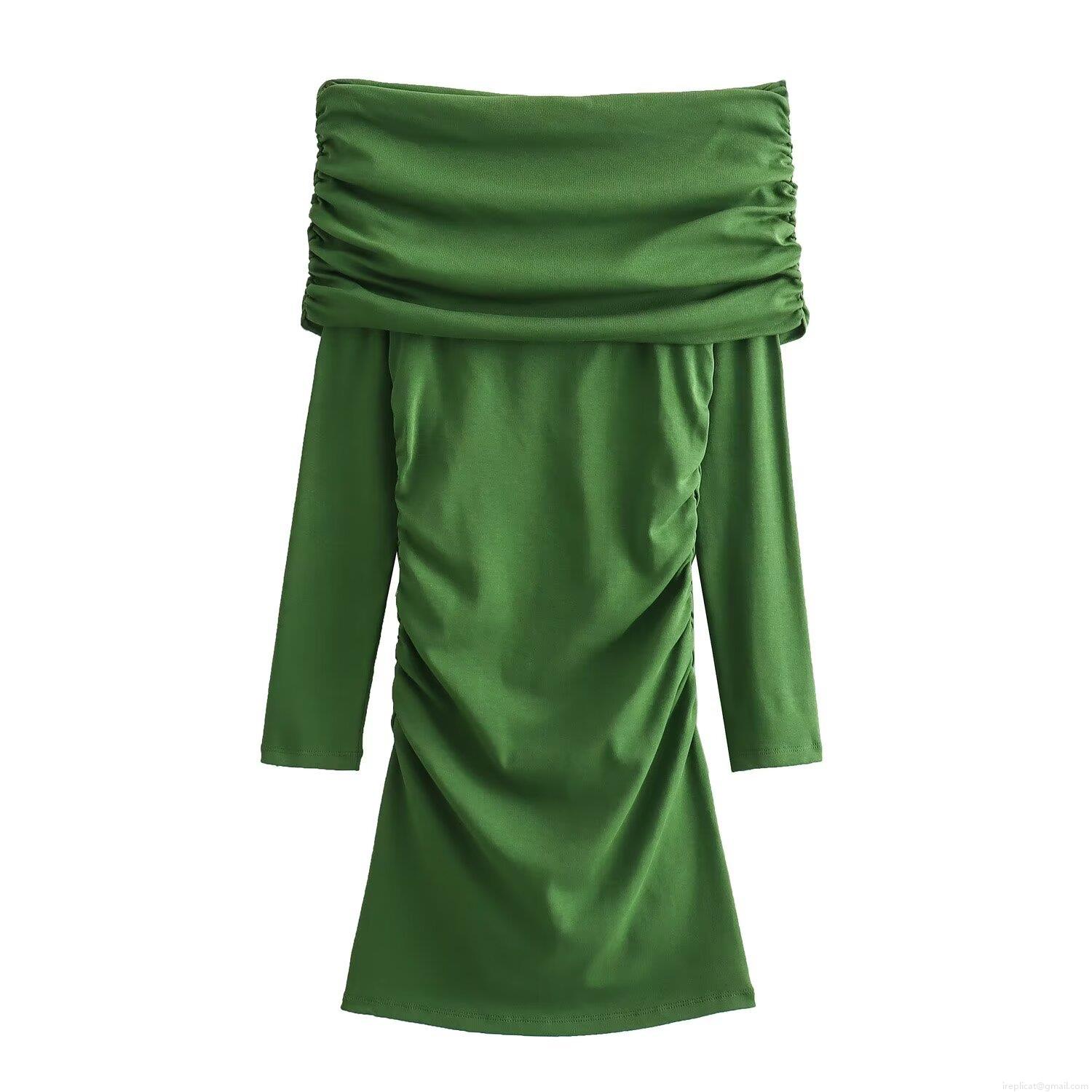 • Women's Off-Shoulder Long Sleeve Mini Dress Sexy Ruched Bodycon Solid Color Polyester Club Party Dress For Ladies