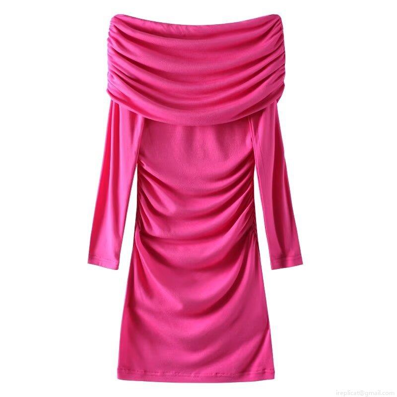 Solid Color, Pleats, Off-shoulder, Gathering, Off-the-shoulder Neckline