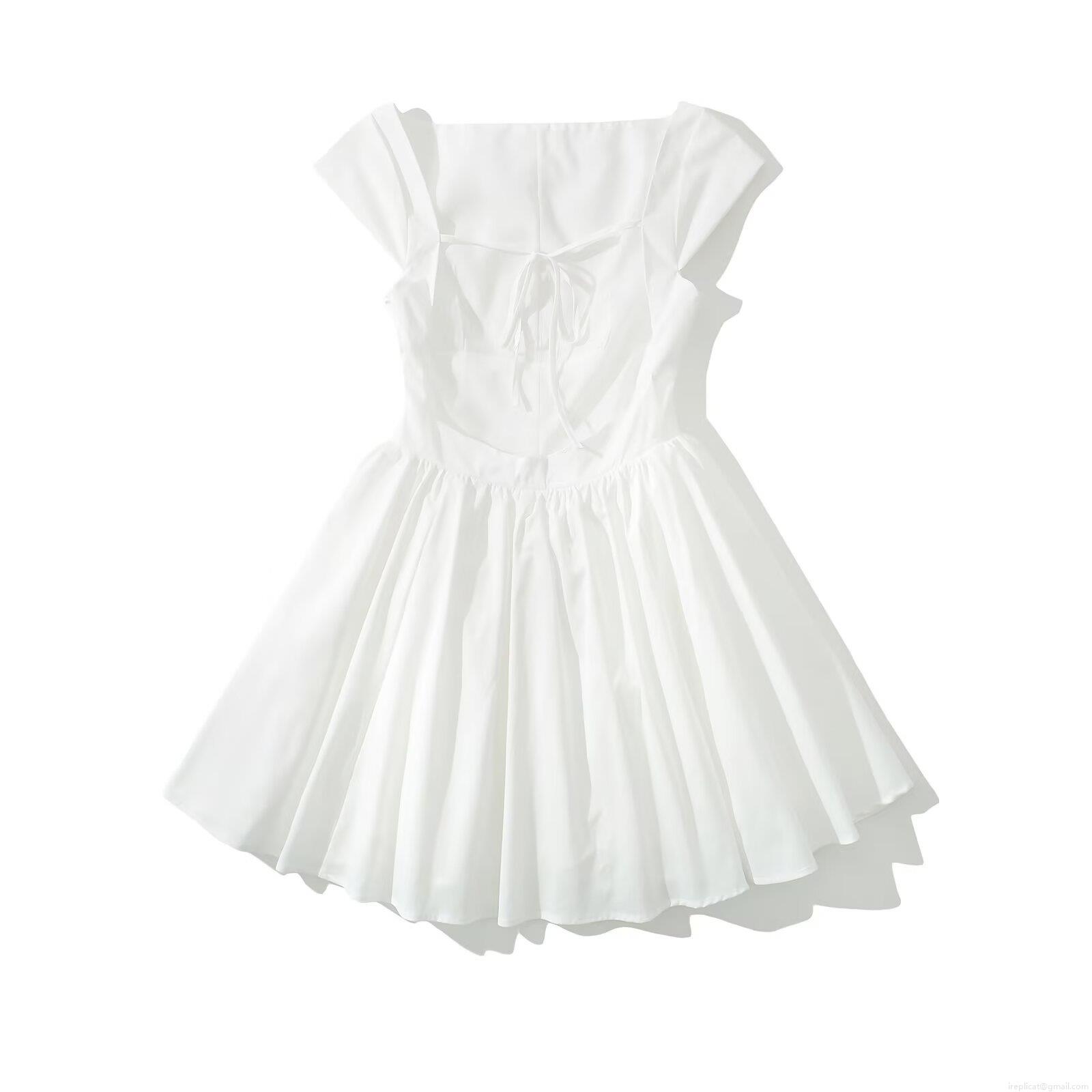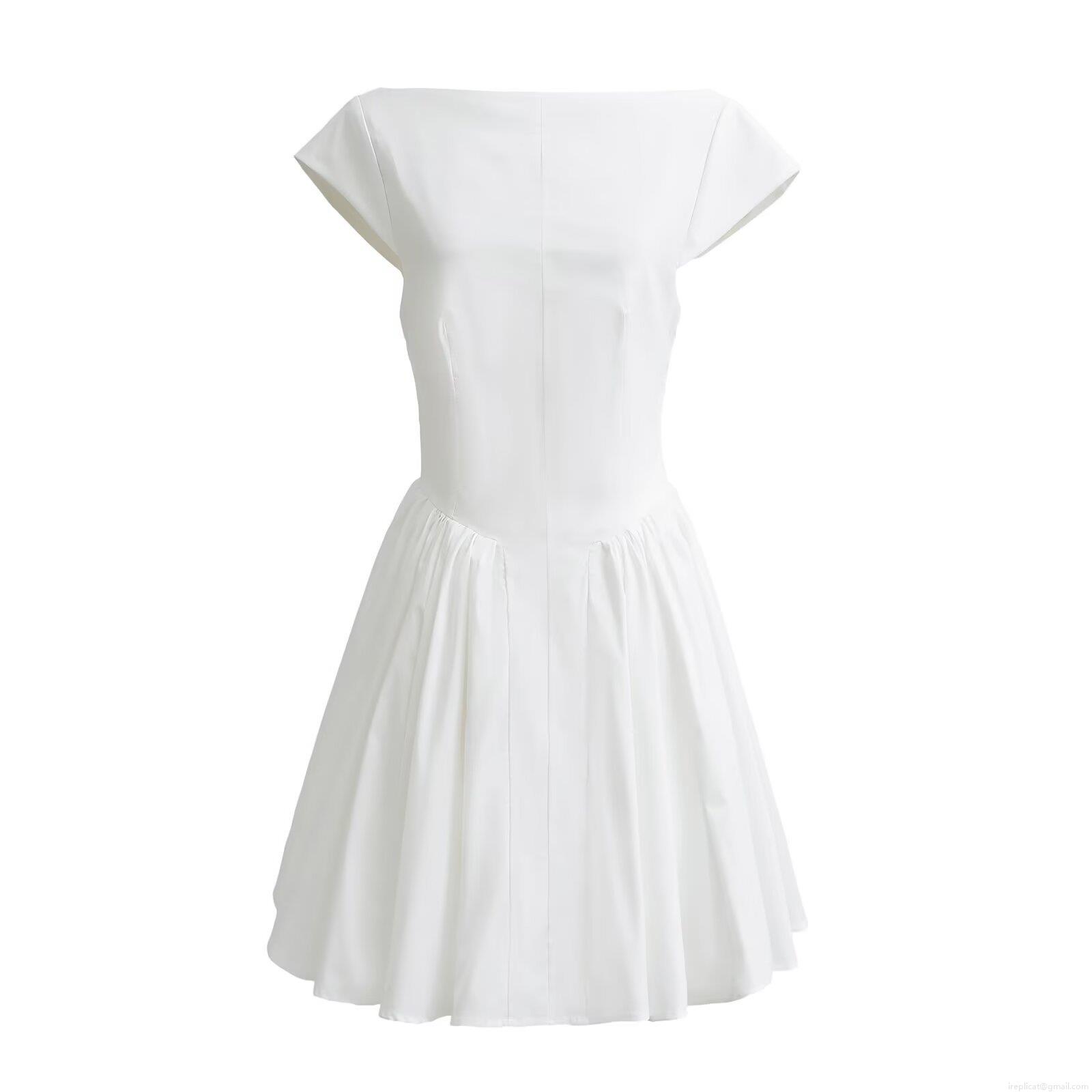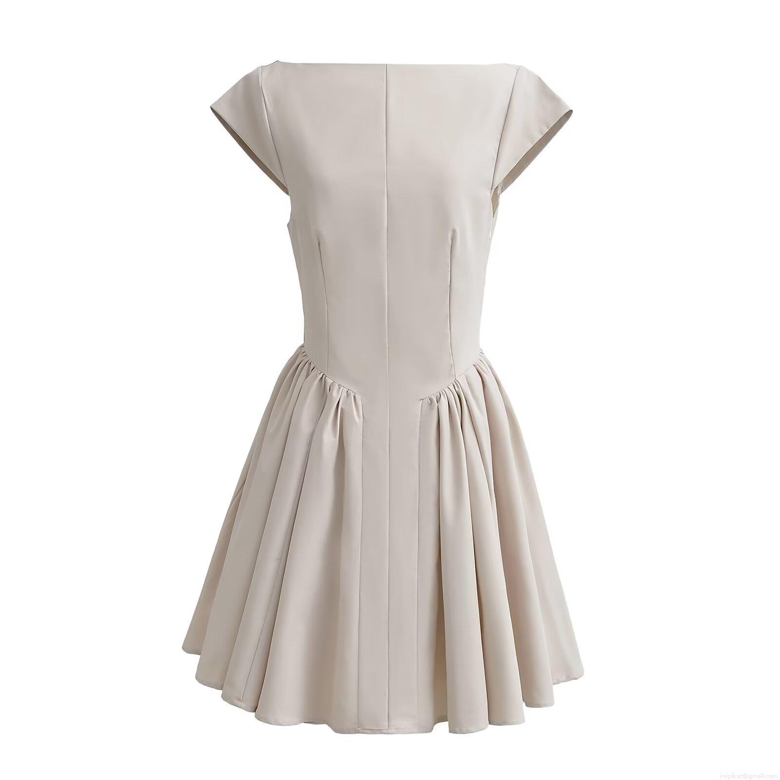 • Women's Off-Shoulder Mini Dress 100% Polyester Mesh Patchwork Sleeveless Pleated A-Line Princess Dress For Party Street Fashion Khaki White