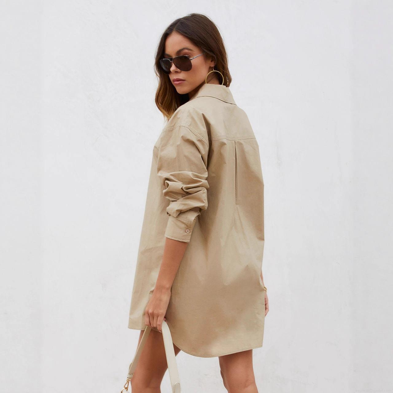• Women's Oversized Mid-length Shirt Dress Lapel Single Breasted Long Sleeve Solid Color Casual Streetwear Fashion Spring Autumn Cotton Blend Tunic Top
