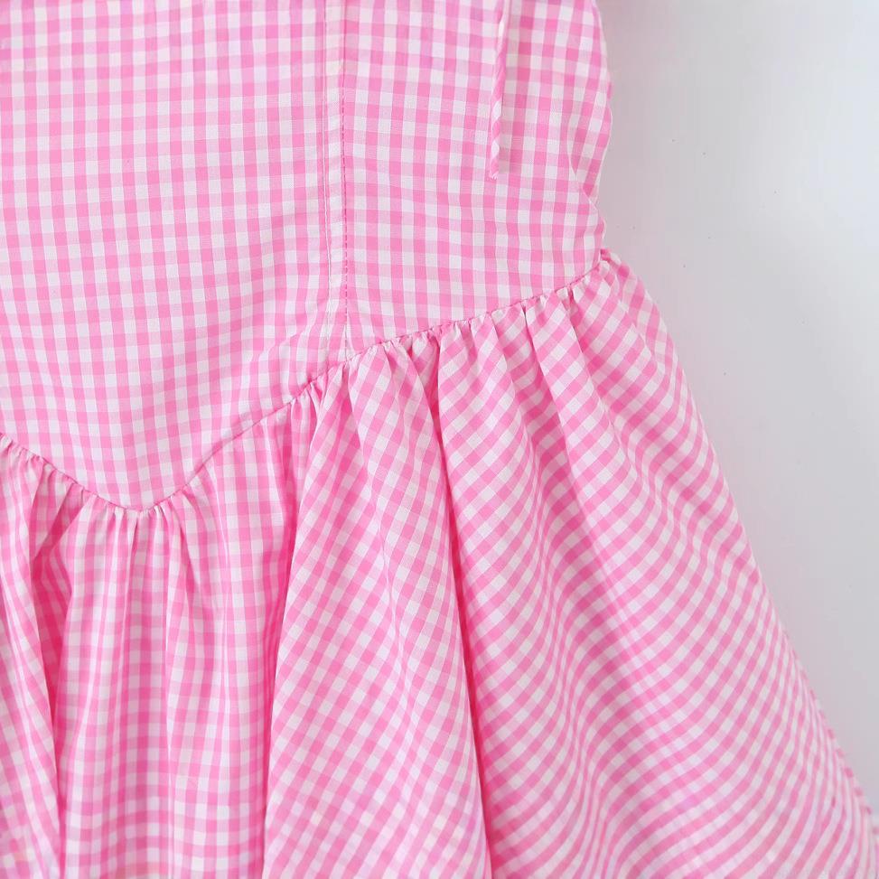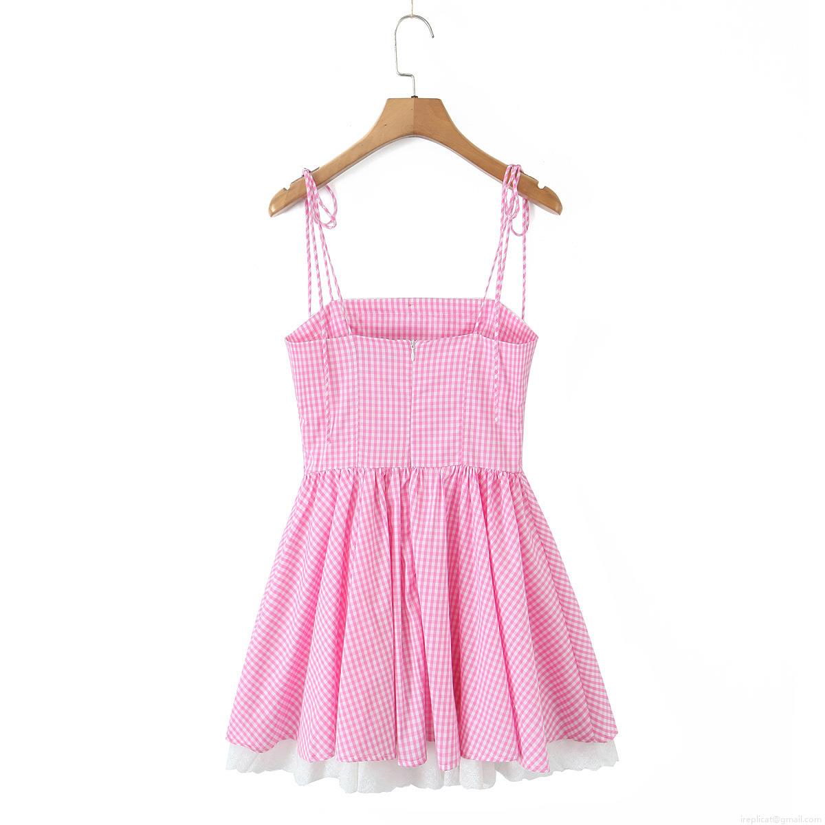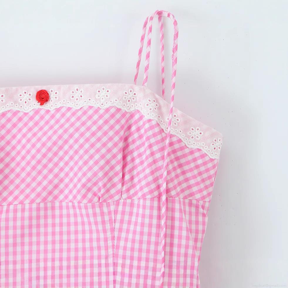 • Women's Pink Gingham Dress Lace Patchwork Backless Camisole Mini Dress Sweet Bow Straps A-Line Party Sundress Polyester Streetwear Summer Clothing