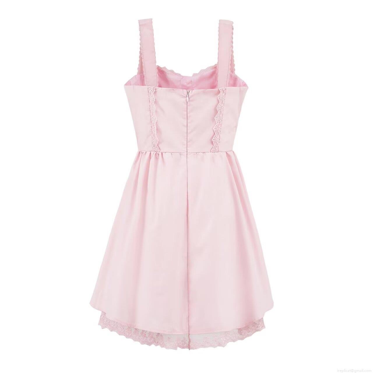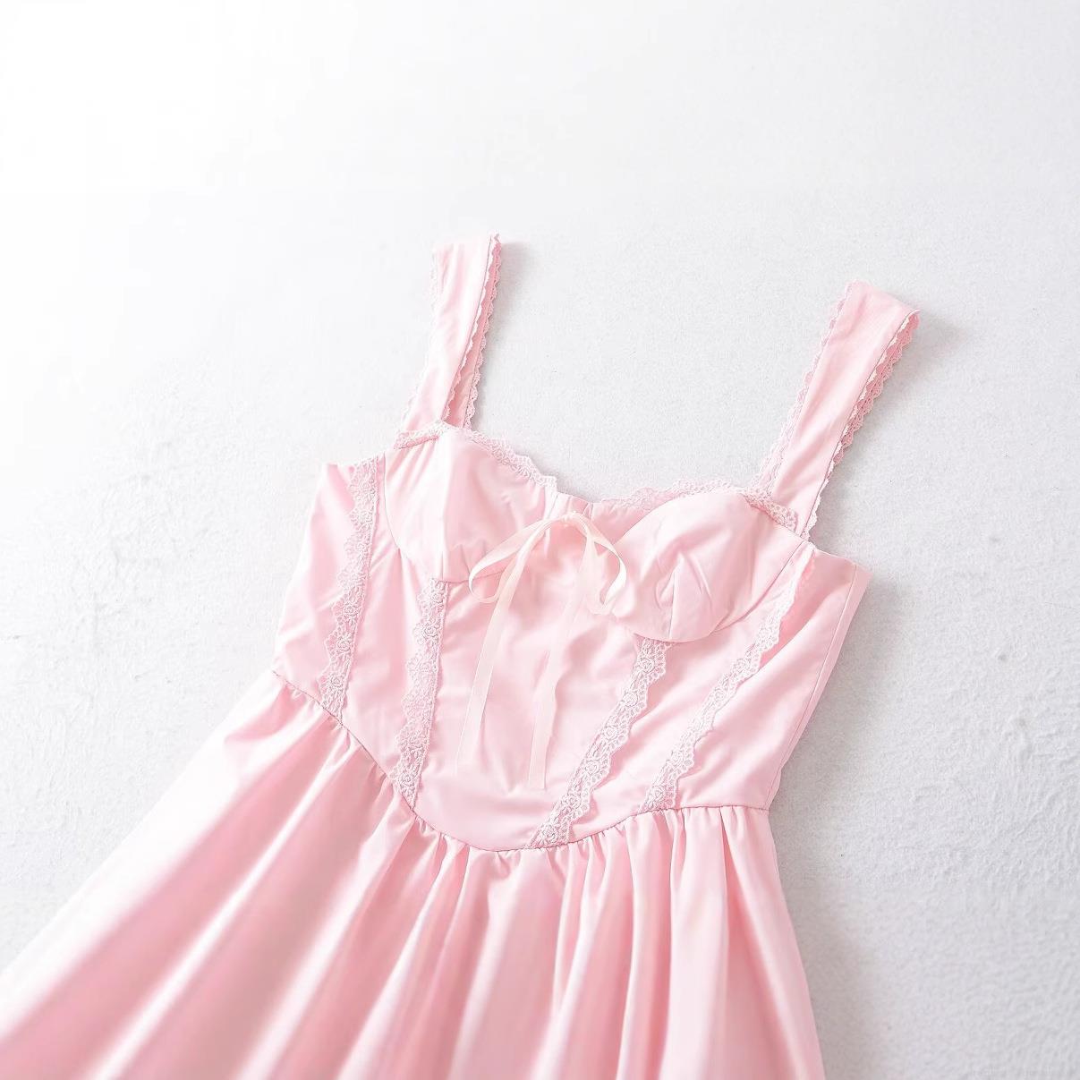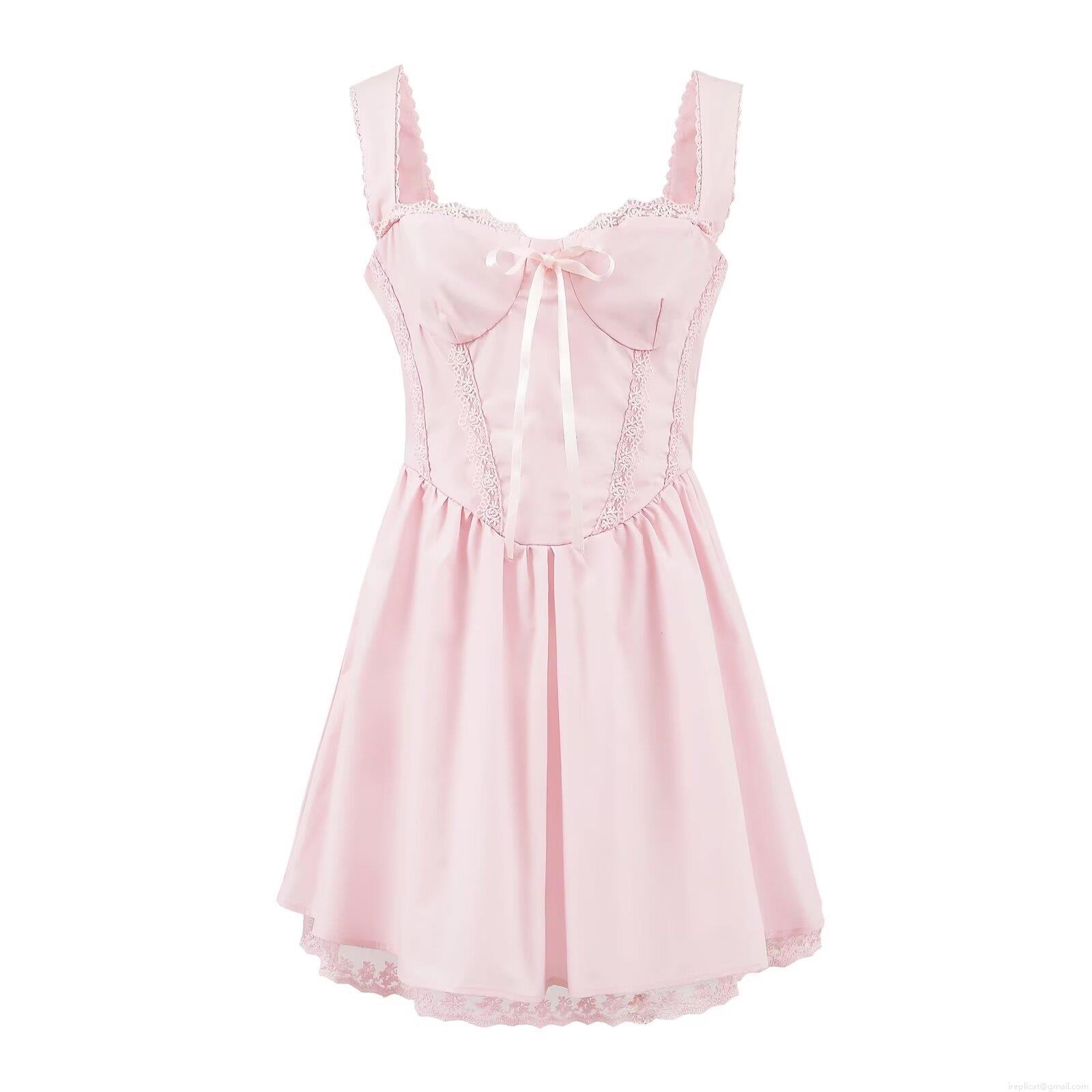 • Women's Pink Lace Mini Cami Dress Sweet Lolita Style Bow Square Neck Satin Polyester Short Dress For Party Dating Streetwear