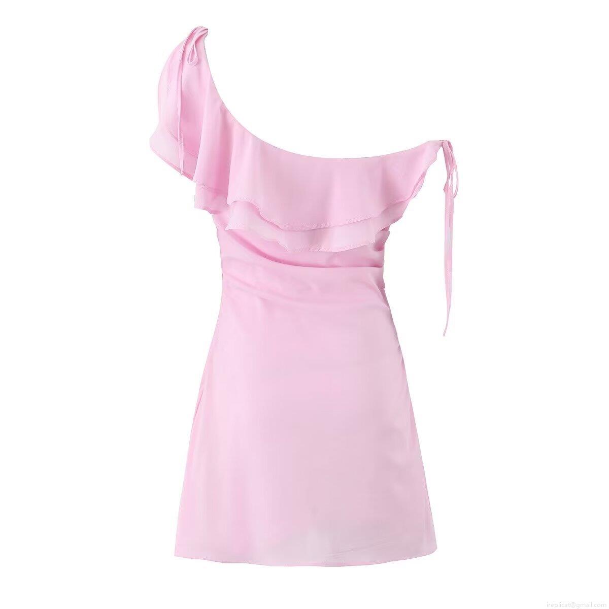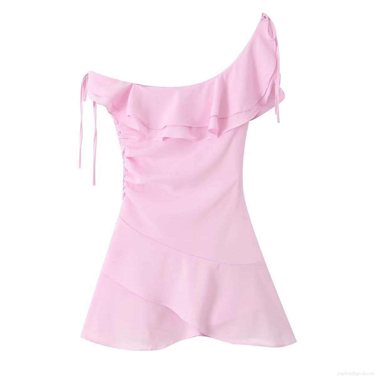 • Women's Pink One Shoulder Ruffle Dress Asymmetrical Irregular Mini Dress With Side Pleats Drawstring Sweet Party Dress For Women Summer Prom Outfit