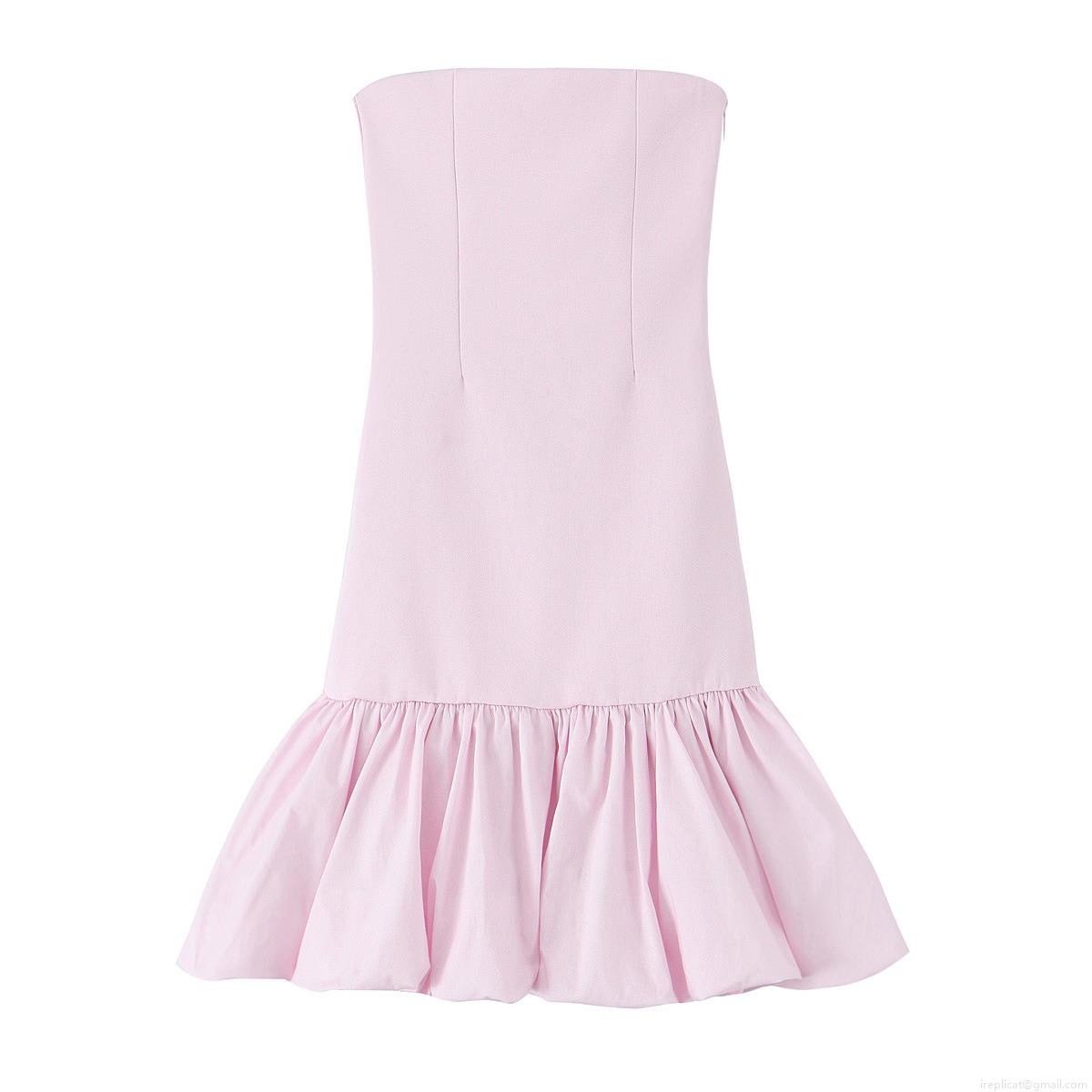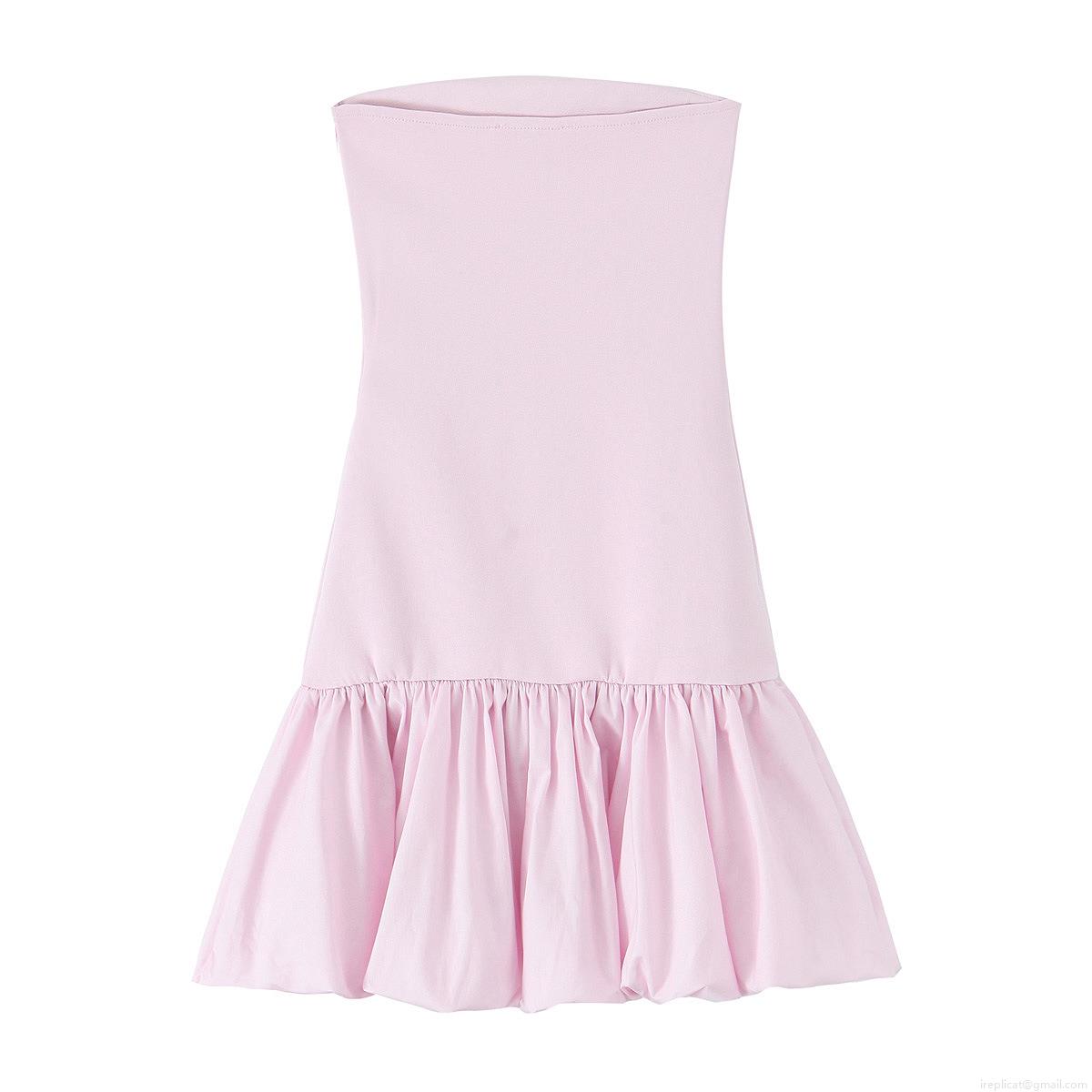 • Women's Pink Strapless Ruched Mini Dress Elegant Backless Bubble Hem Bodycon Sexy Party Dress Sleeveless Summer Clubwear Evening Outfit