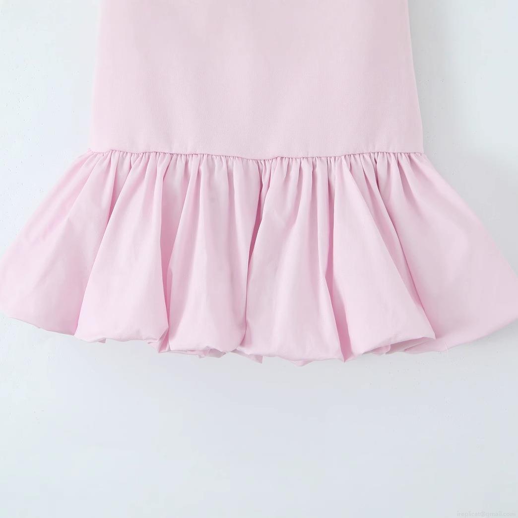 Solid Color, Pleats, Strapless, Bubble Skirt
