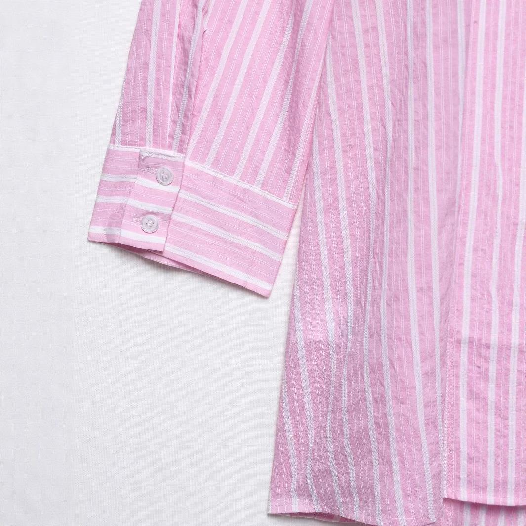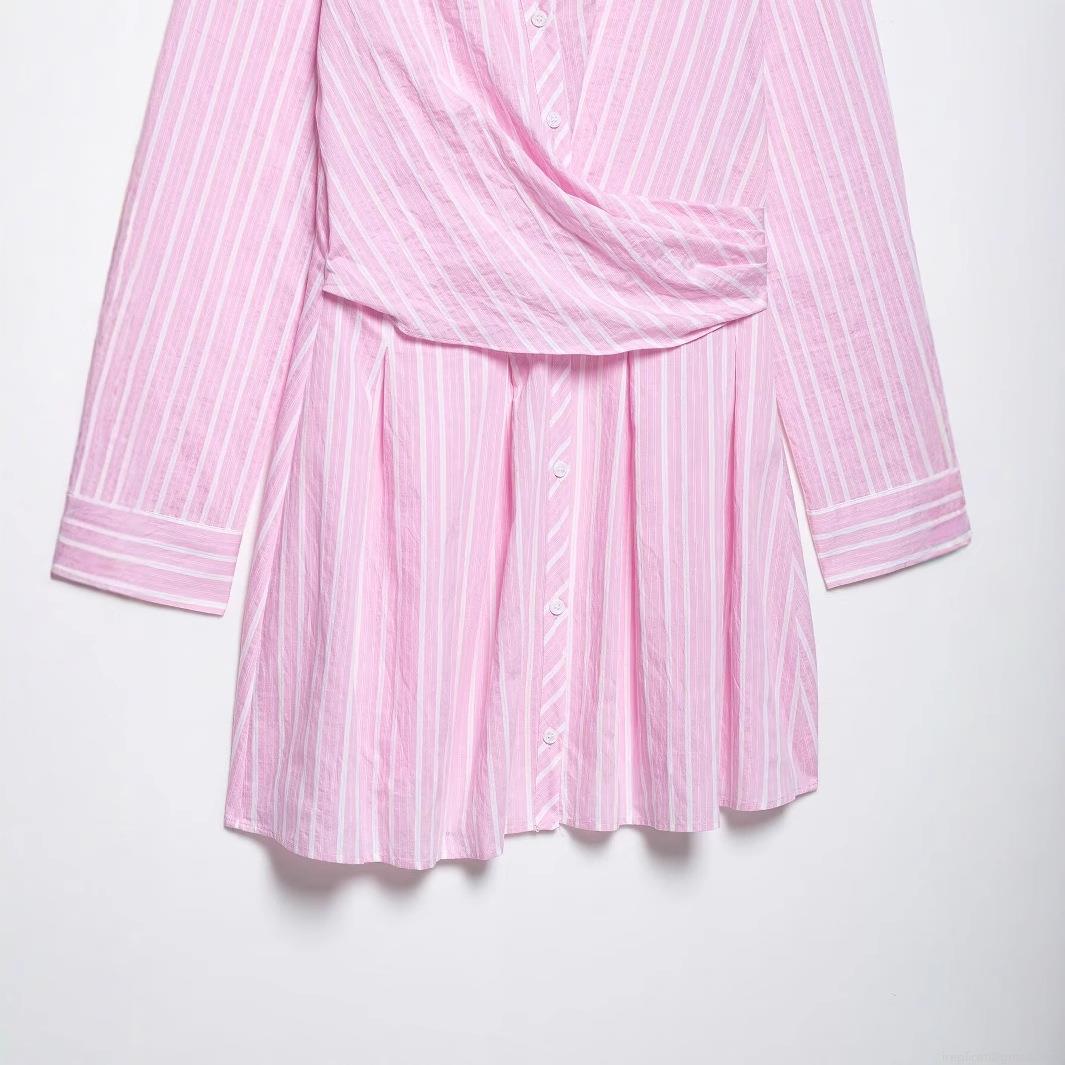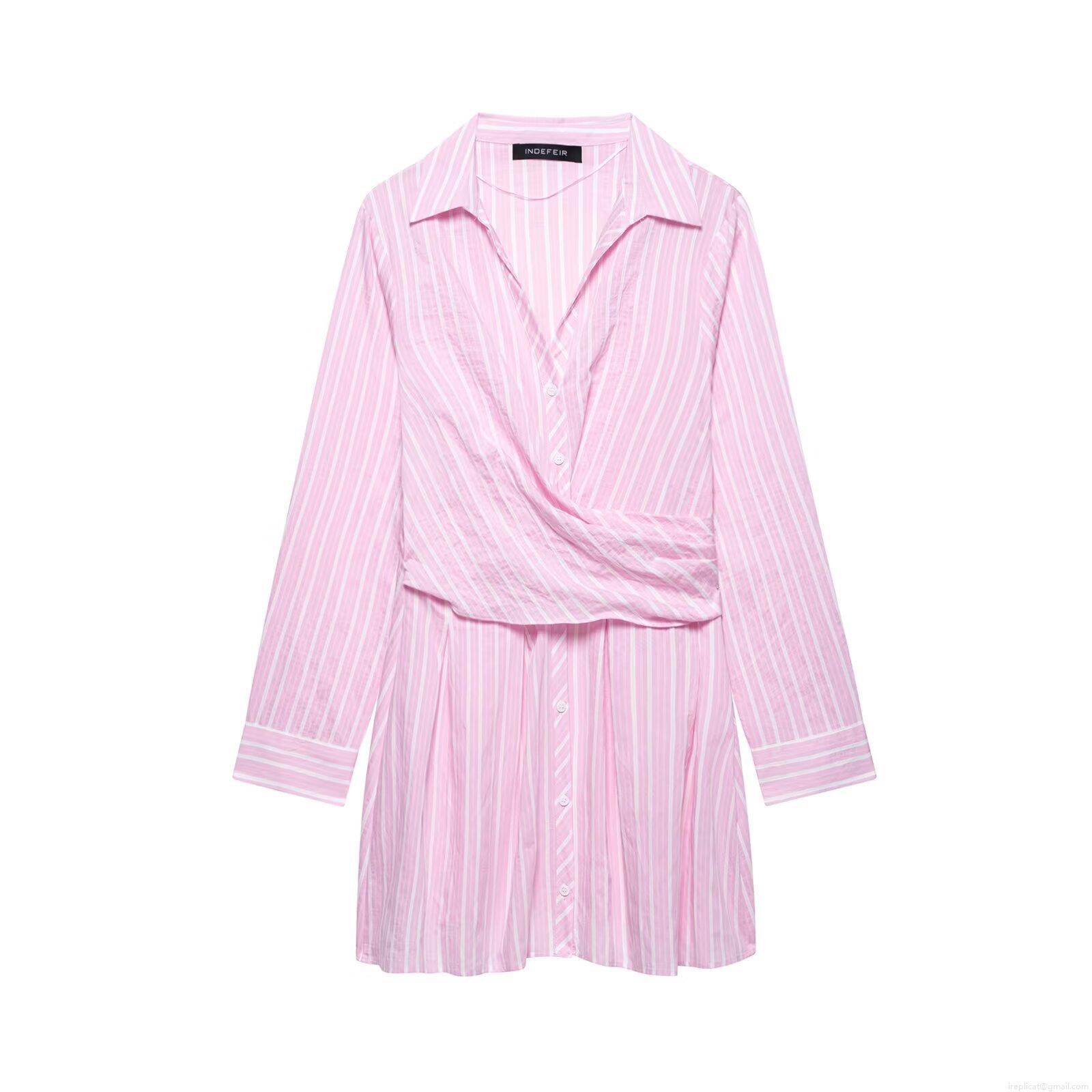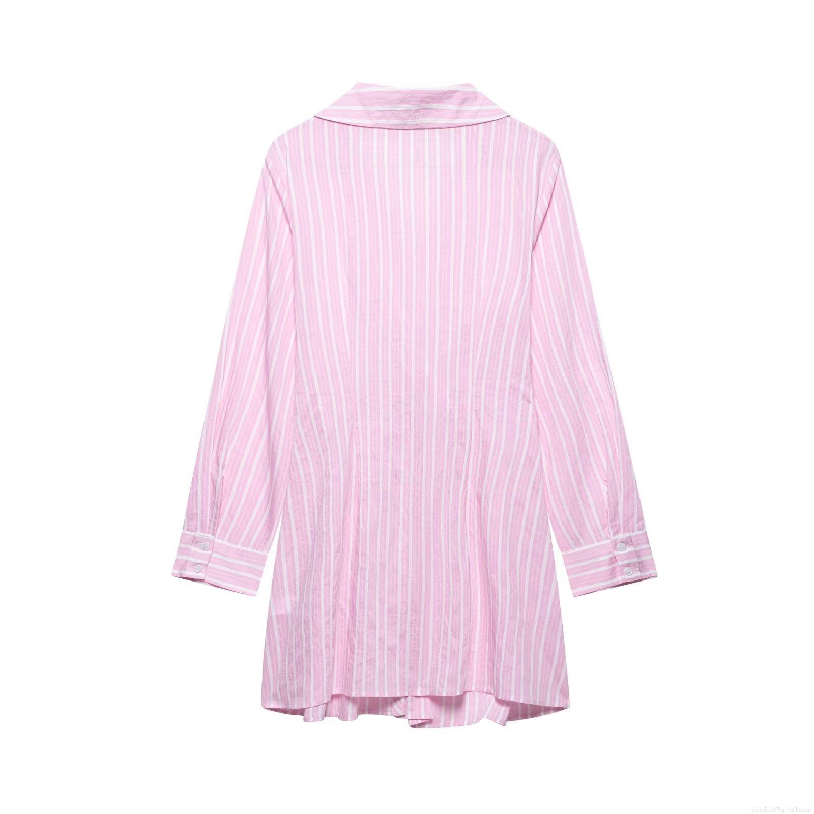 • Women's Pink Striped Long Sleeve Shirt Dress Cotton Polyester Blend Button Down Waist Tie Mini Dress For Daily Party Elegant Celebrity Style