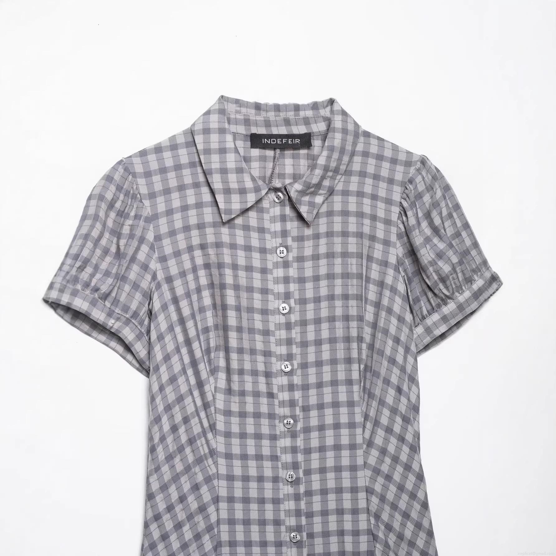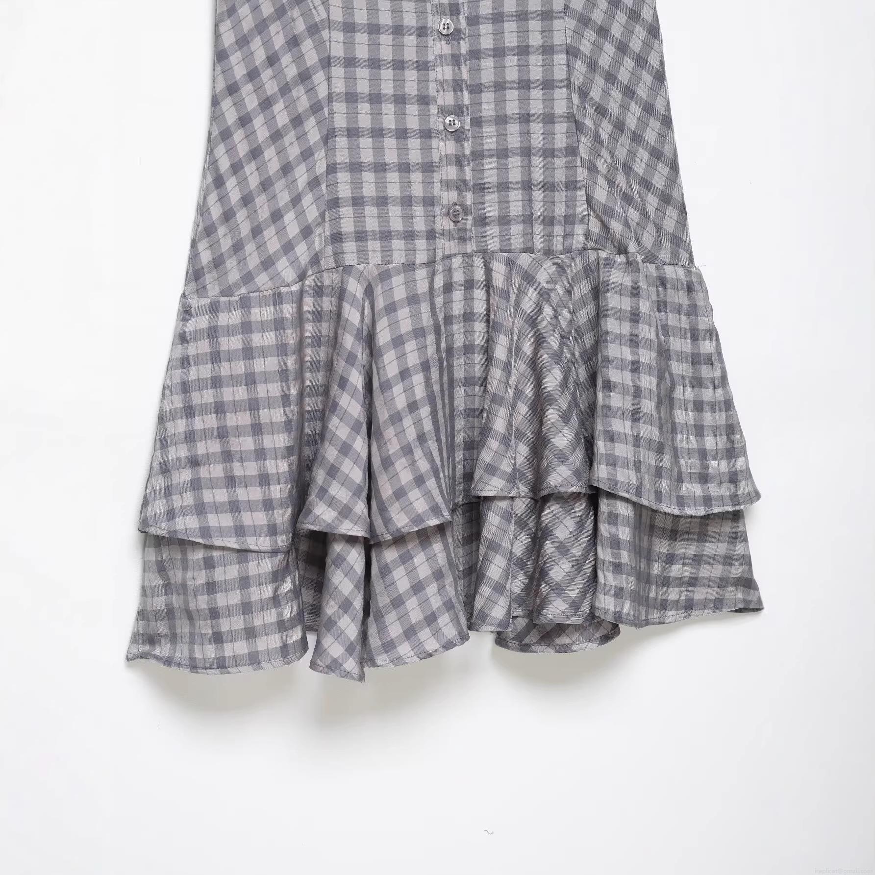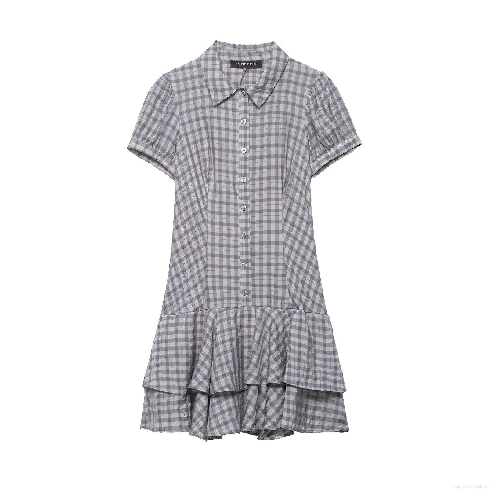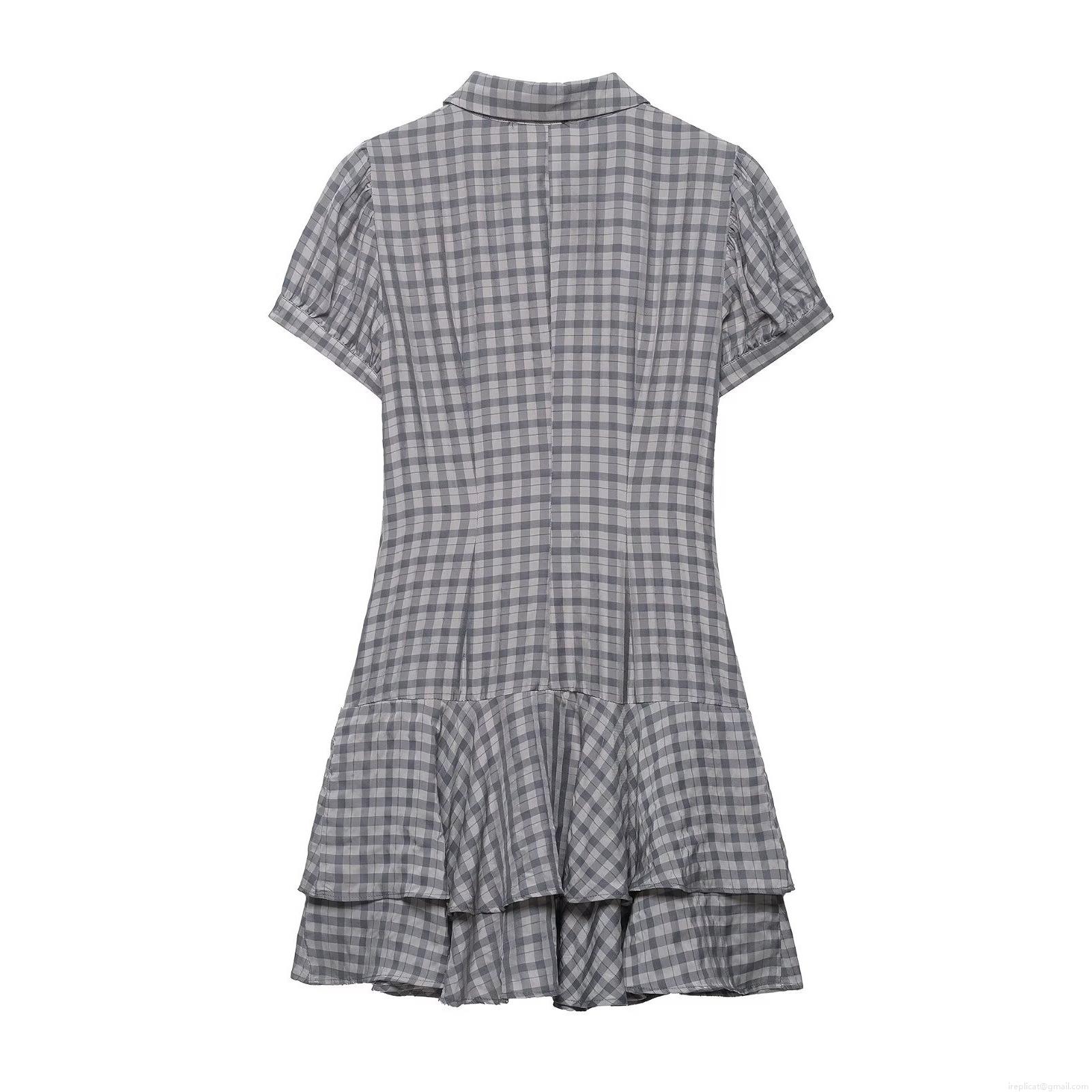 • Women's Plaid Gingham Mini Dress Short Sleeve Shirt Collar Button Up Layered Ruffle Hem Polyester Bodycon Summer Casual Sweet Dress for Women