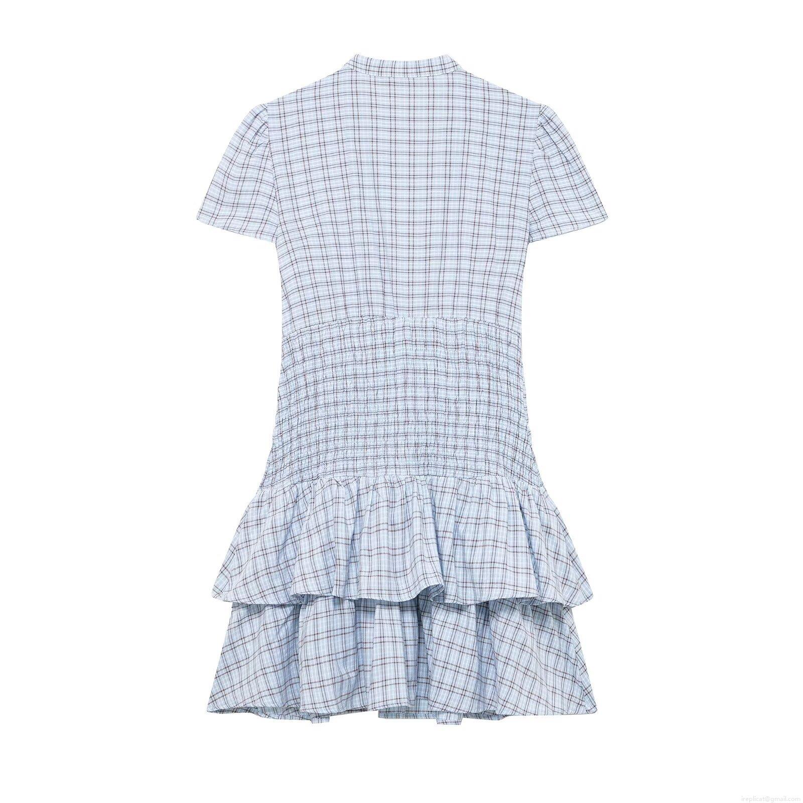 • Women's Plaid Smocked Waist Mini Dress Stand Collar Short Sleeve Tiered Ruffle Hem A-Line Dress Casual Summer Holiday Party Sundress