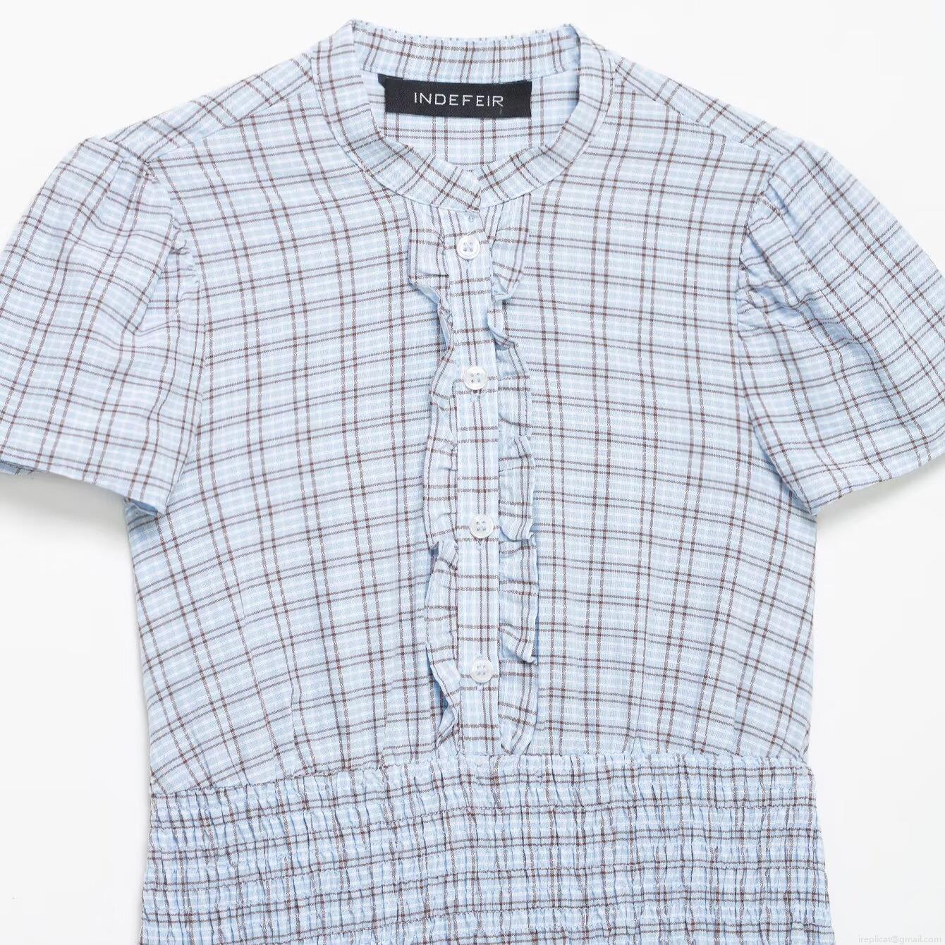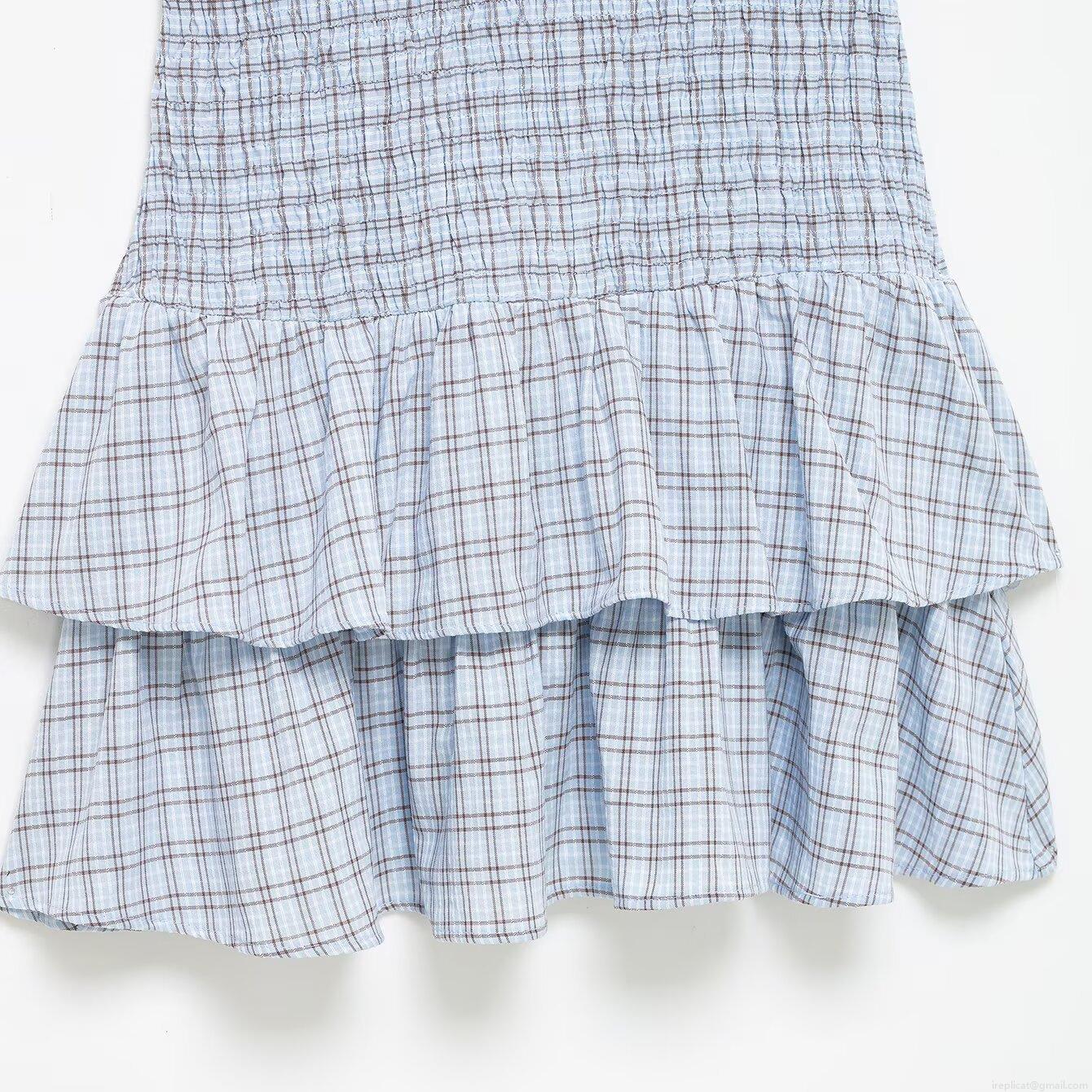 Checkered Pattern, Ruffles, Layered Design, Button Decoration, Elastic Gathering