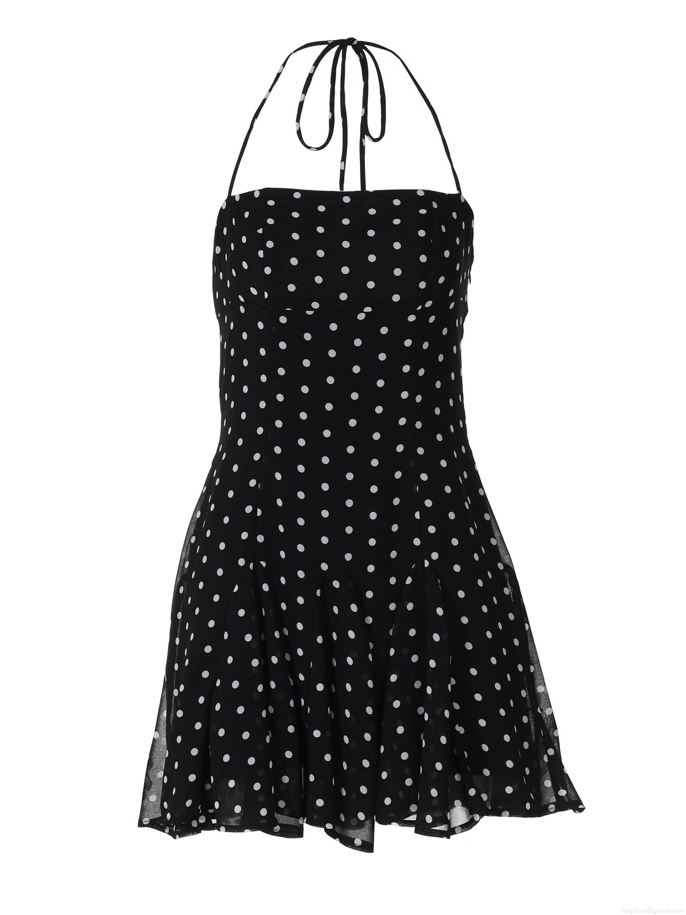 • Women's Polka Dot Halter Mini Dress Sexy Backless Sleeveless Ruffle Hem A-Line Summer Vacation Party Slim Fit Sundress