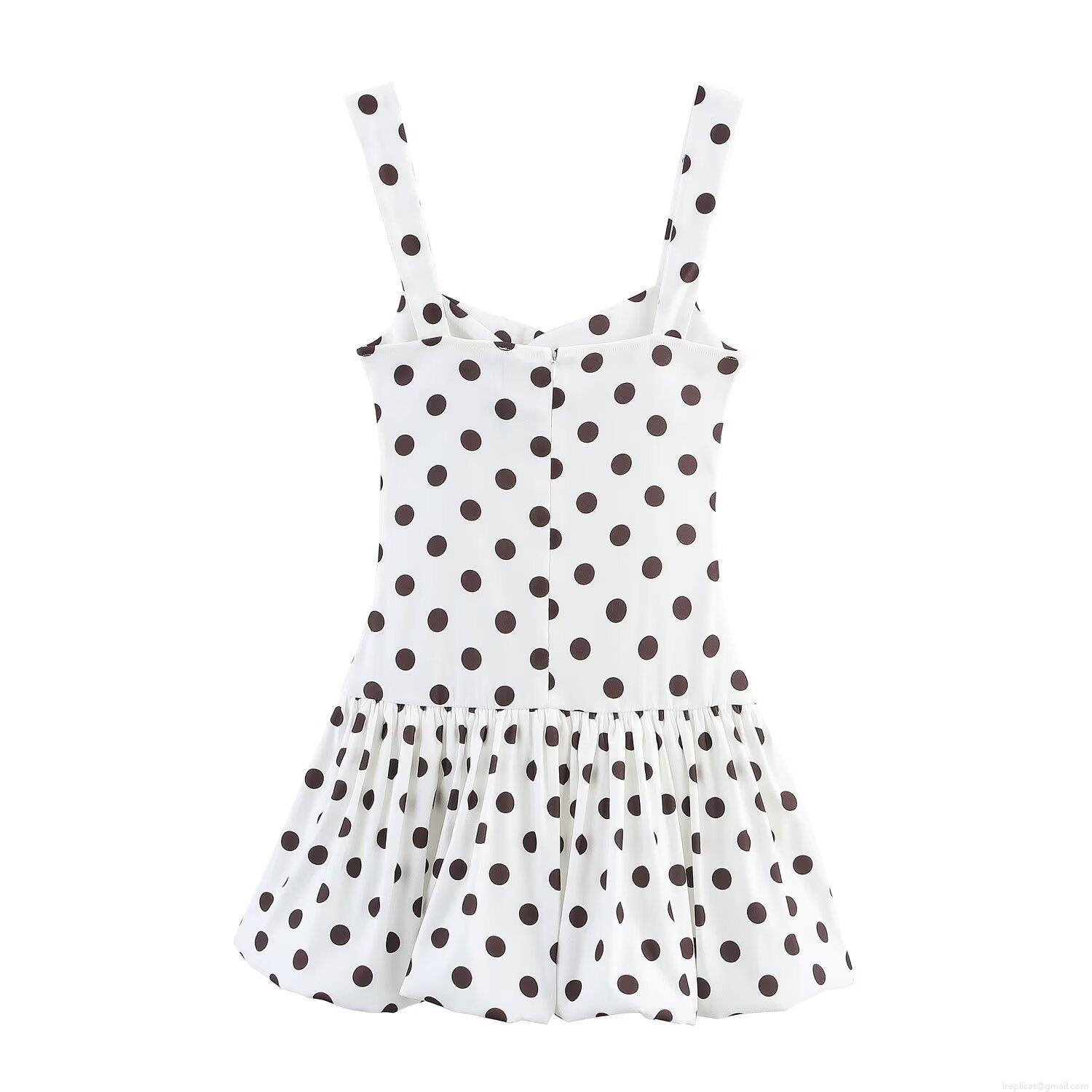 • Women's Polka Dot Mini Dress Polyester V-Neck Sleeveless Puffy Hem Camisole Dress For Party Elegant Summer Sundress