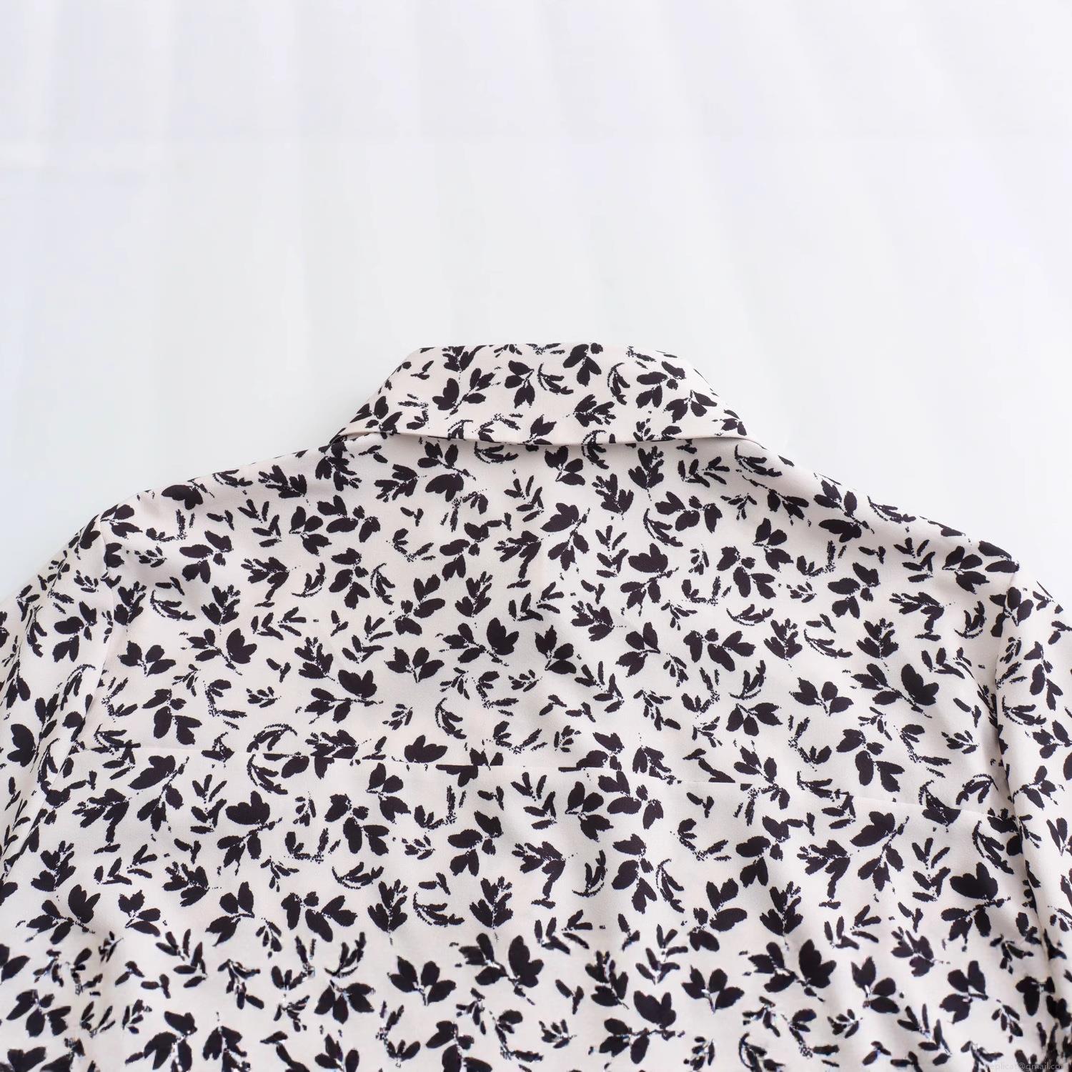 • Women's Polyester Floral Print Long Sleeve Mini Shirt Dress With Belt Elegant Black White Leaf Pattern Ruffle Hem A-Line Dress For Casual Party Office Lady