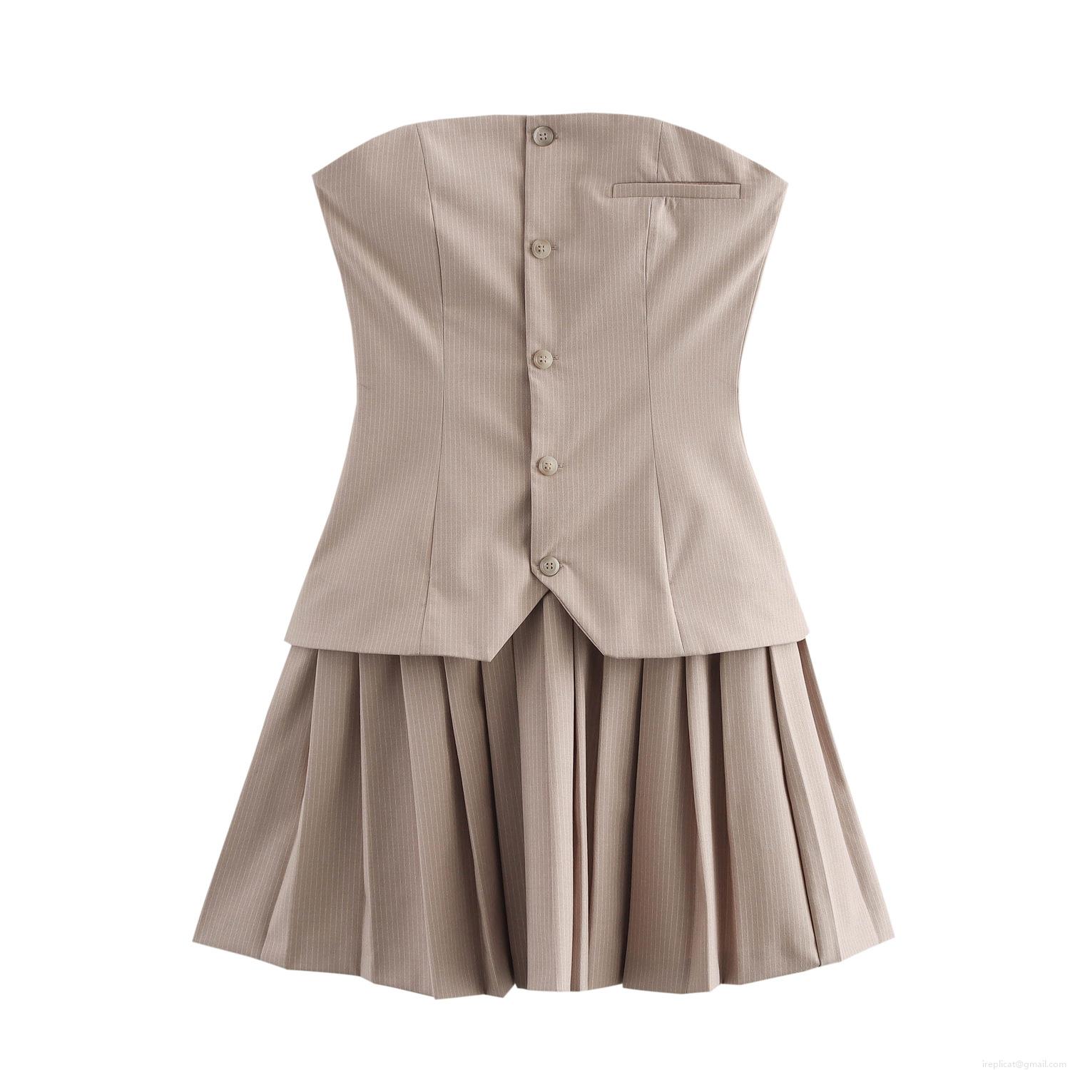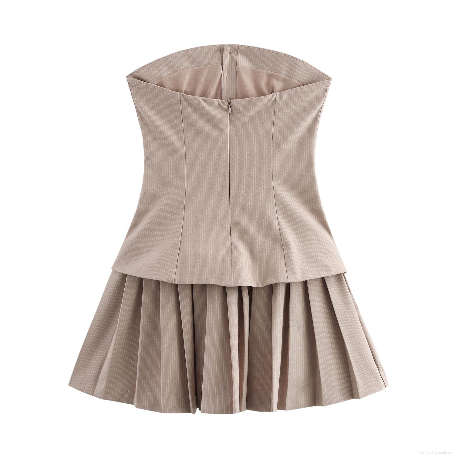 • Women's Preppy Striped Tube Mini Dress Pleated Hem Faux Vest Design Sleeveless High Waist Polyester Dress For Party Summer