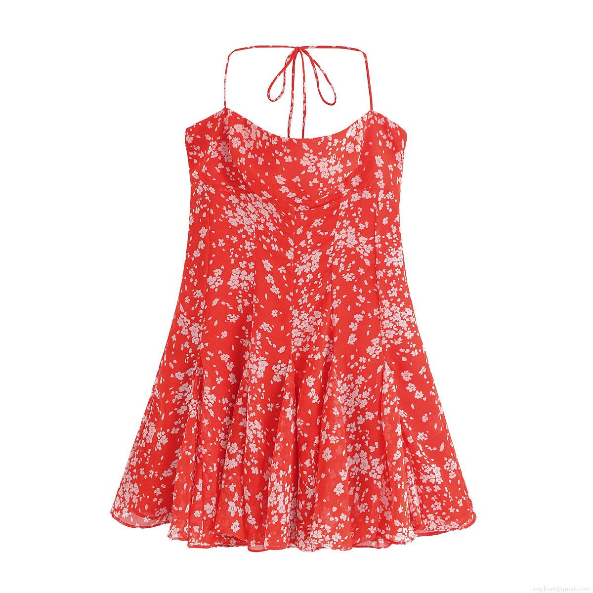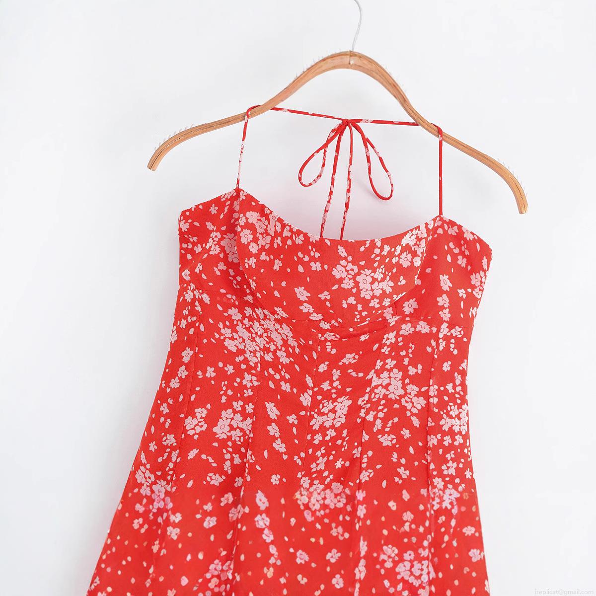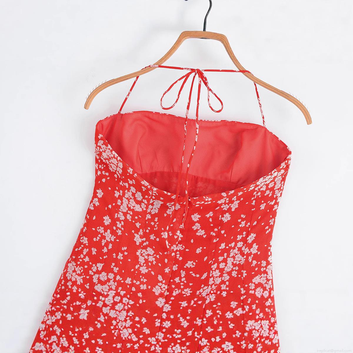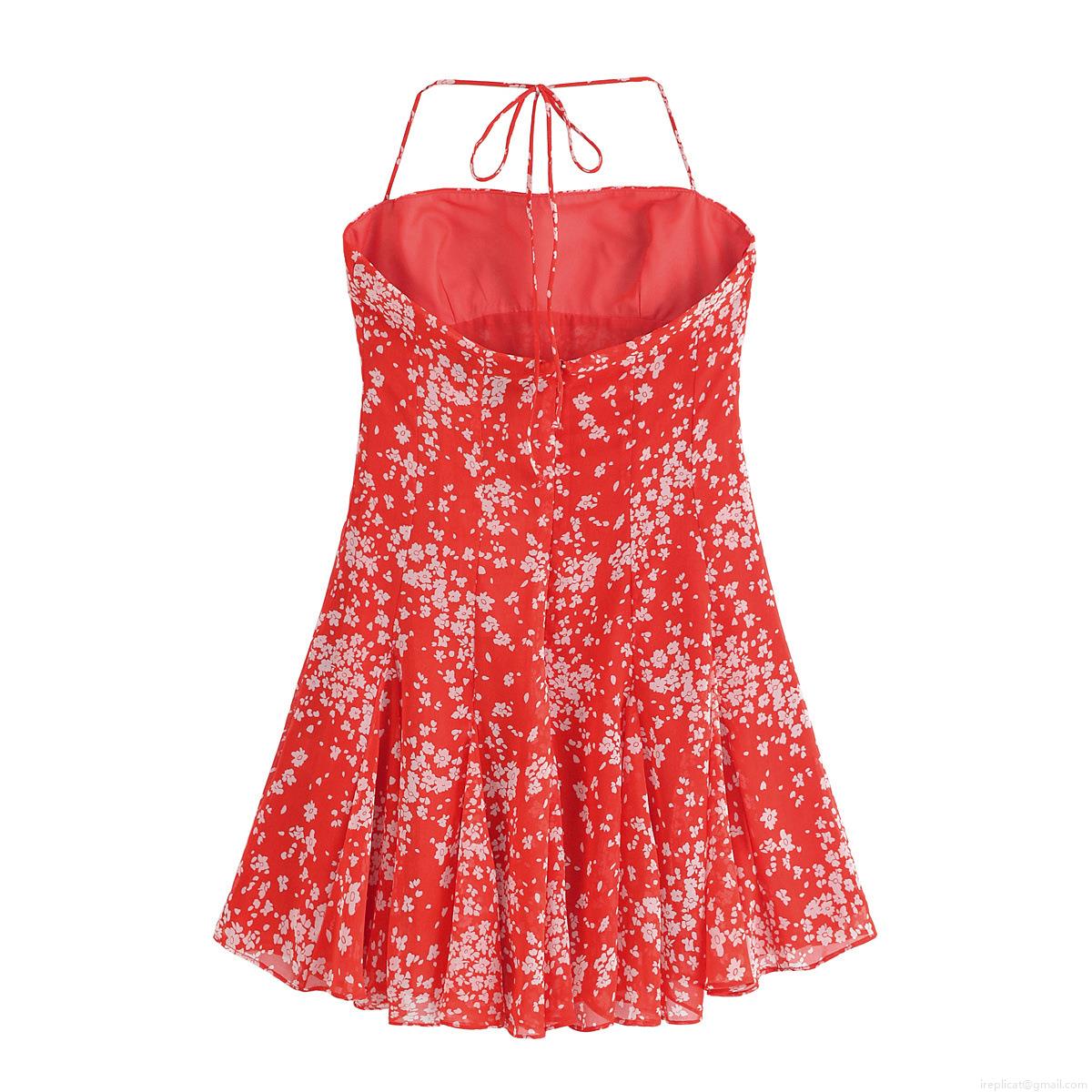 • Women's Red Floral Print Halter Neck Mini Dress Polyester Sleeveless Backless Camisole Sundress For Summer Beach Vacation Sexy Bodycon A-Line Dress