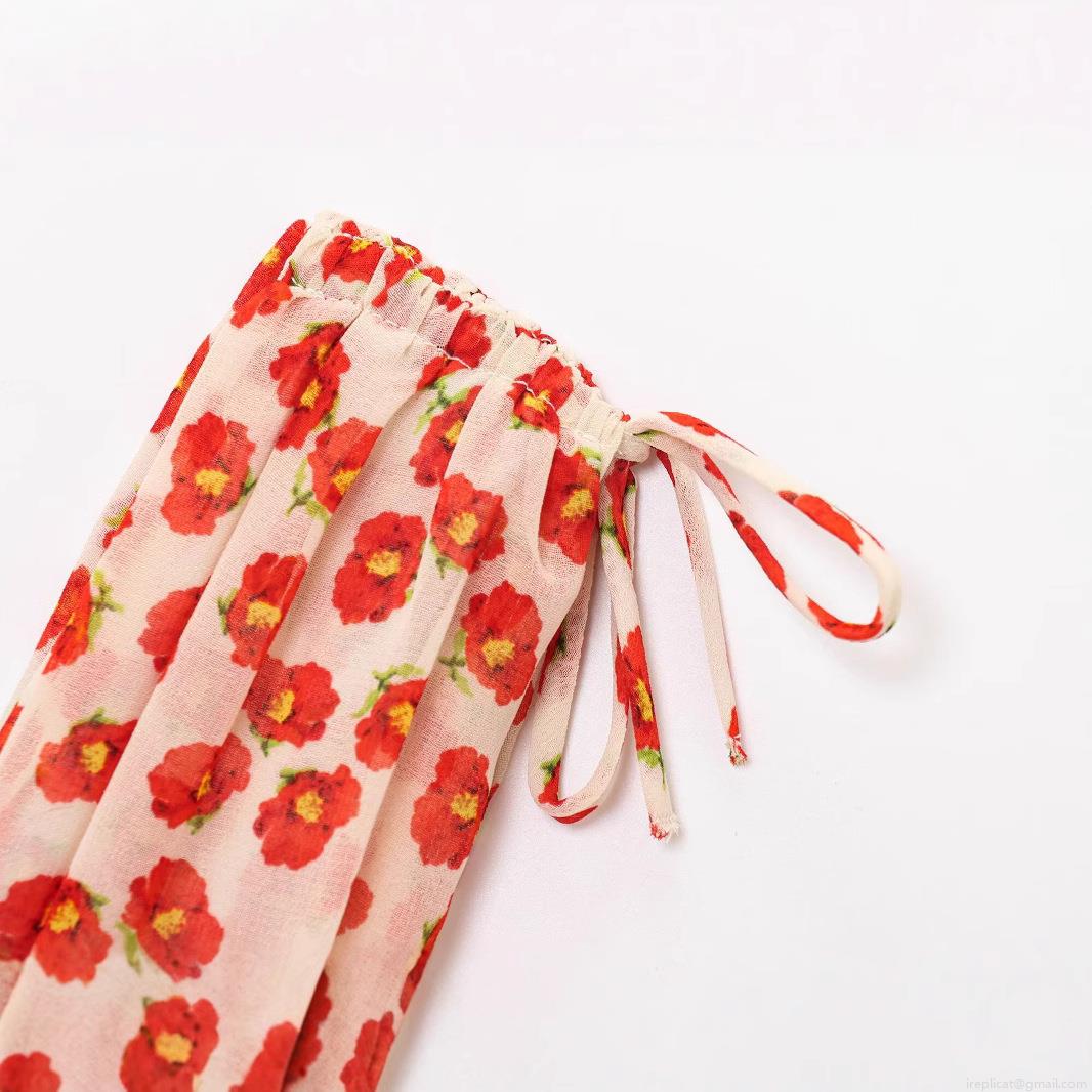 • Women's Red Floral Print V-Neck Camisole Dress Bow Shoulder Tie Smocked Waist A-Line Mini Dress Summer Casual Party Boho Style Lightweight Chiffon Sundress