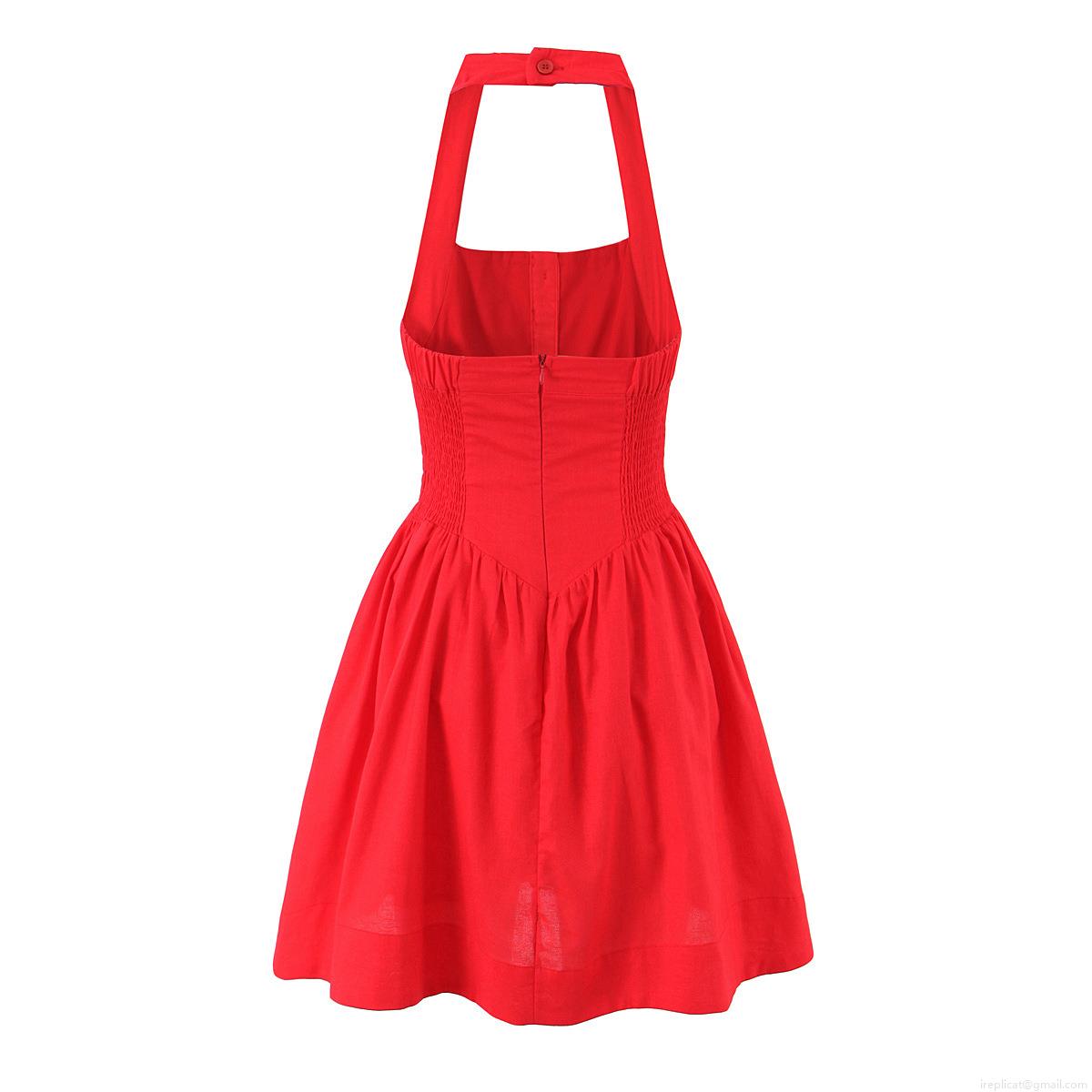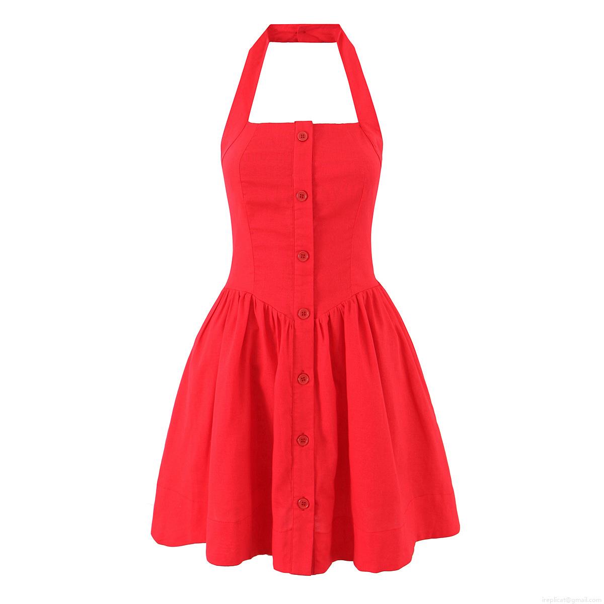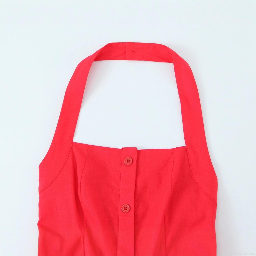 • Women's Red Halter Backless Cotton Linen Blend Dress Single Breasted Button Front Sleeveless Mini Dress Slim Fit A-Line Summer Party Vacation Dress