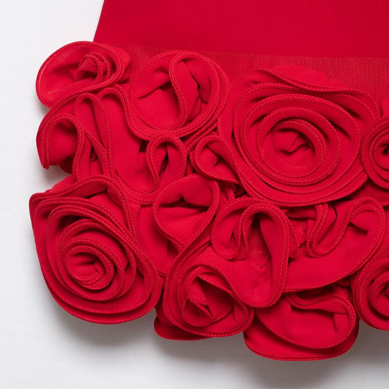 • Women's Red Mini Dress 3D Rose Floral Camisole V-Neck Slim Fit Bodycon Party Dress Polyester Spandex Blended Fabric Sleeveless Sexy Elegant Summer Fashion Outfit