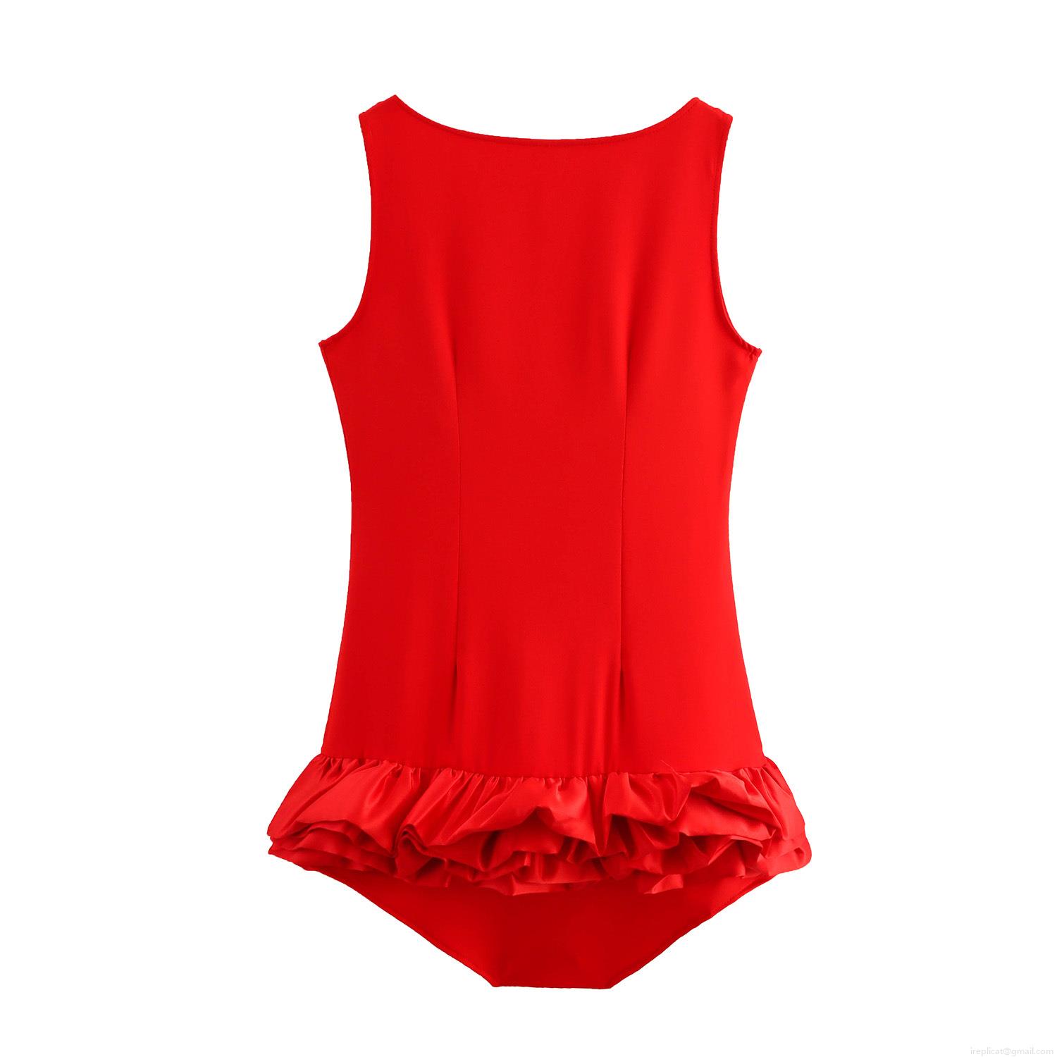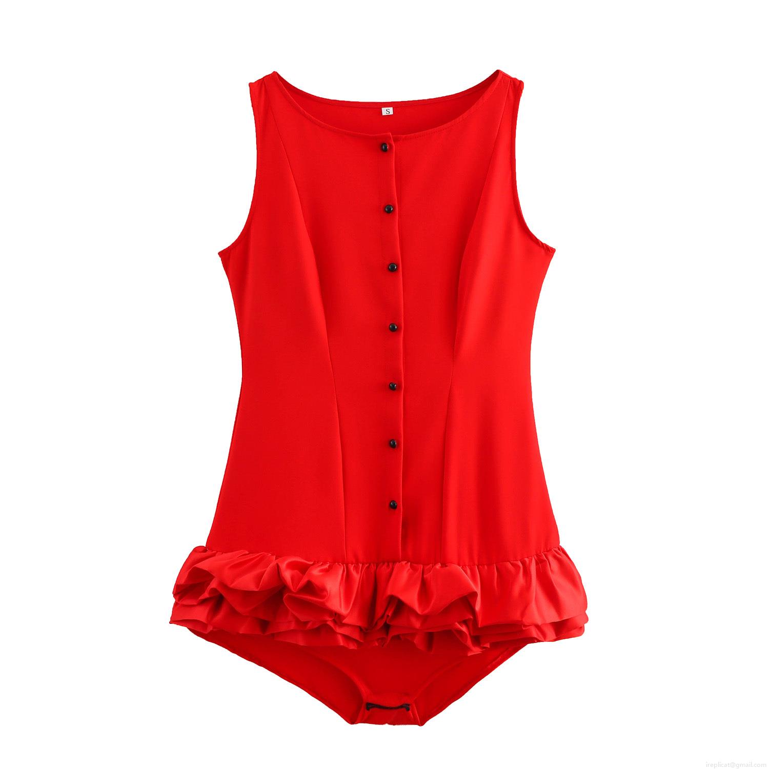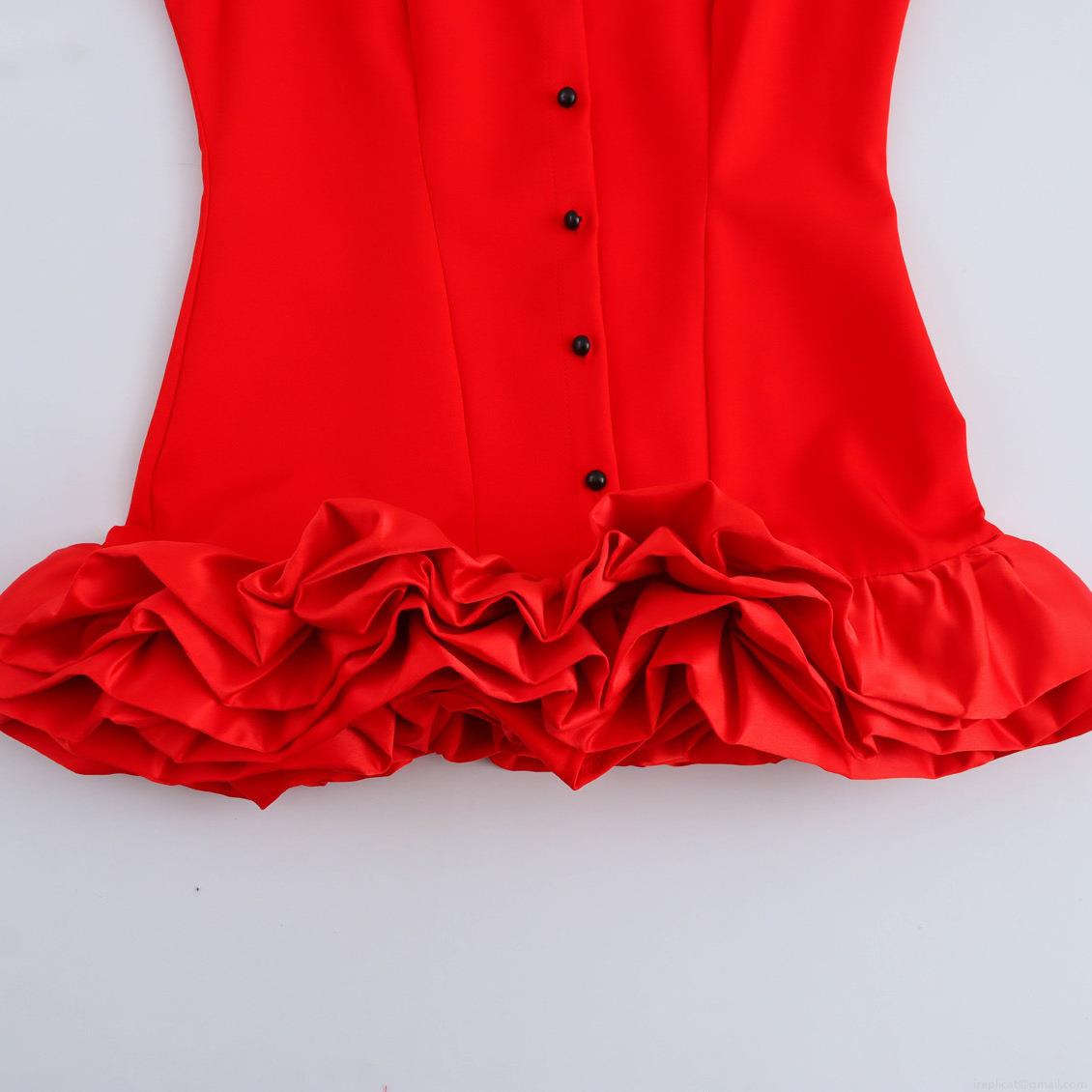 • Women's Red Sleeveless Mini Dress Elegant High Waist Layered Ruffle Hem Front Button Chic Party Banquet Summer Fall Solid Color Polyester Dress