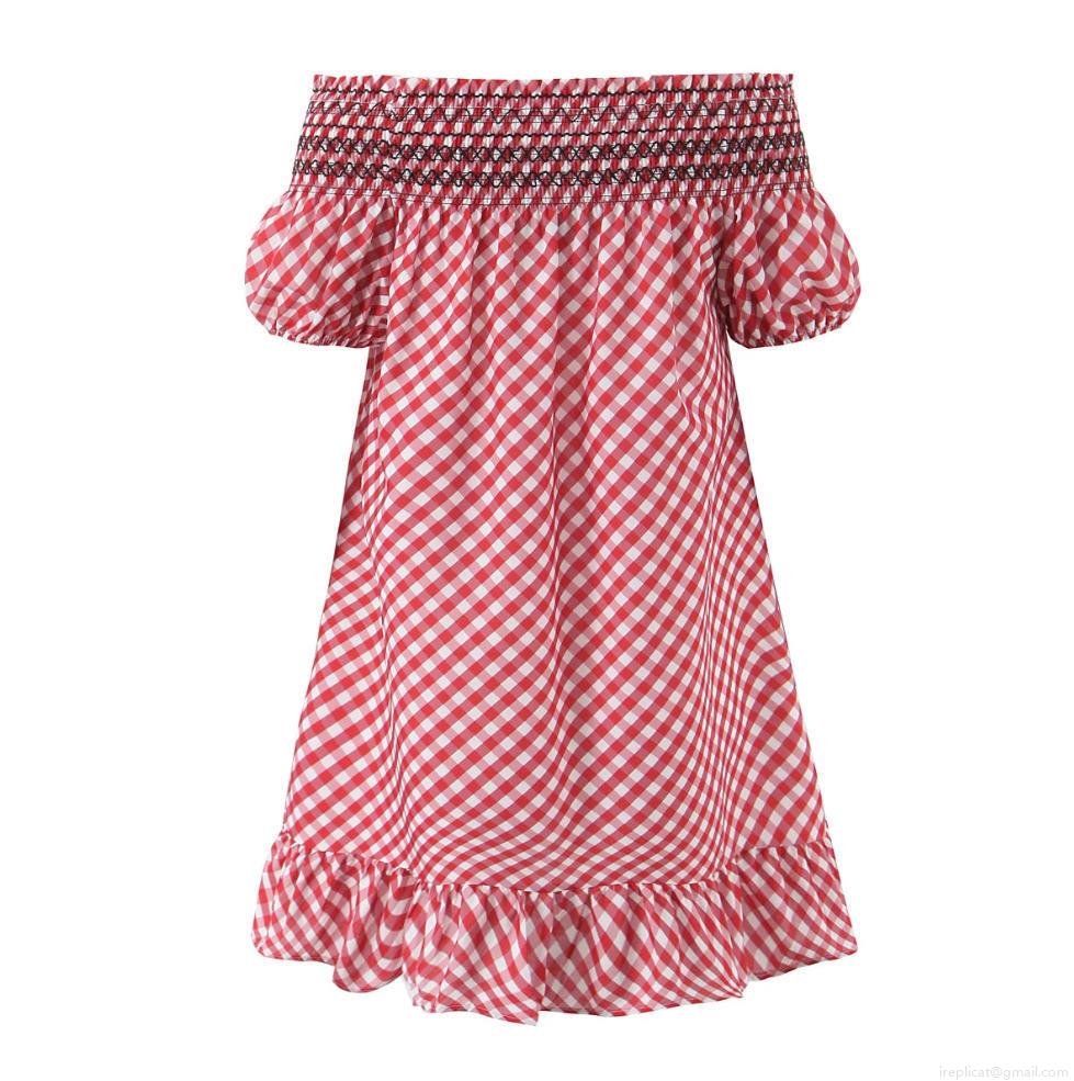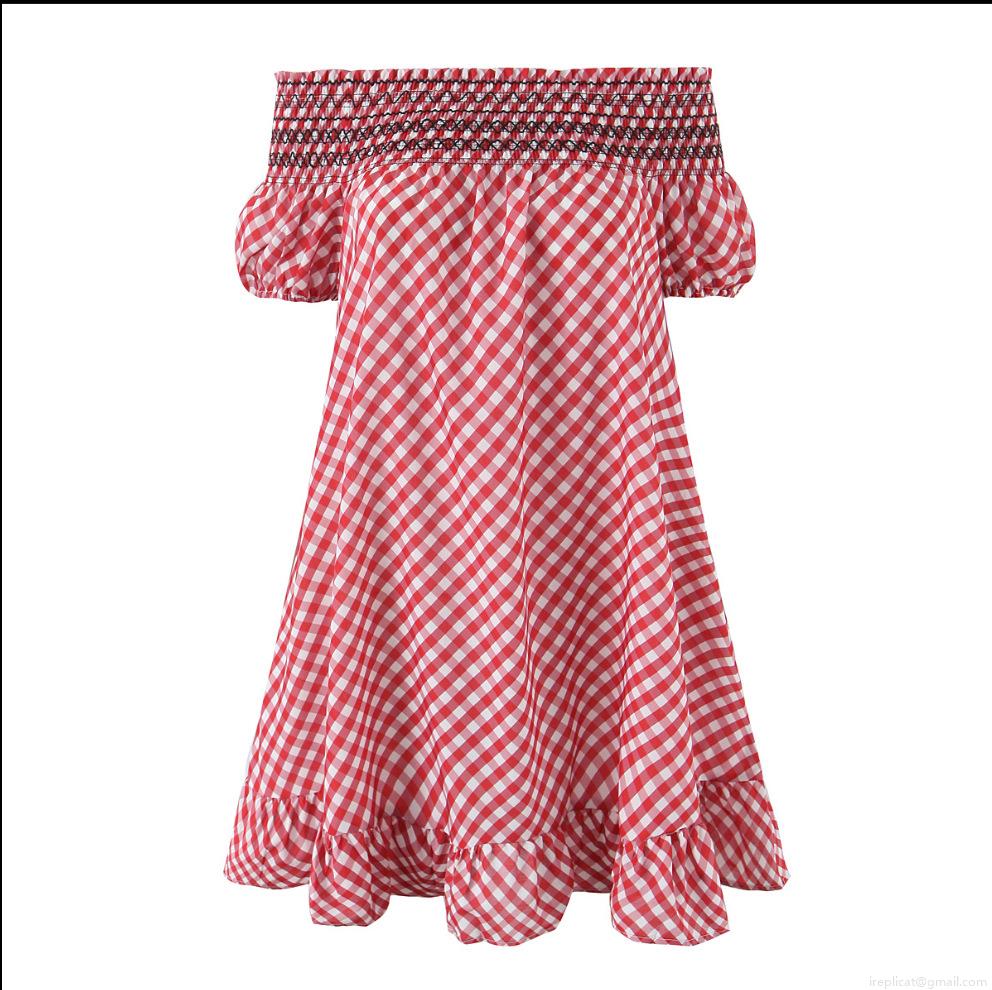 • Women's Red White Gingham Off-The-Shoulder Mini Dress With Ruffle Hem Smocked Bust Puff Sleeve Summer Casual A-Line Short Dress For Women