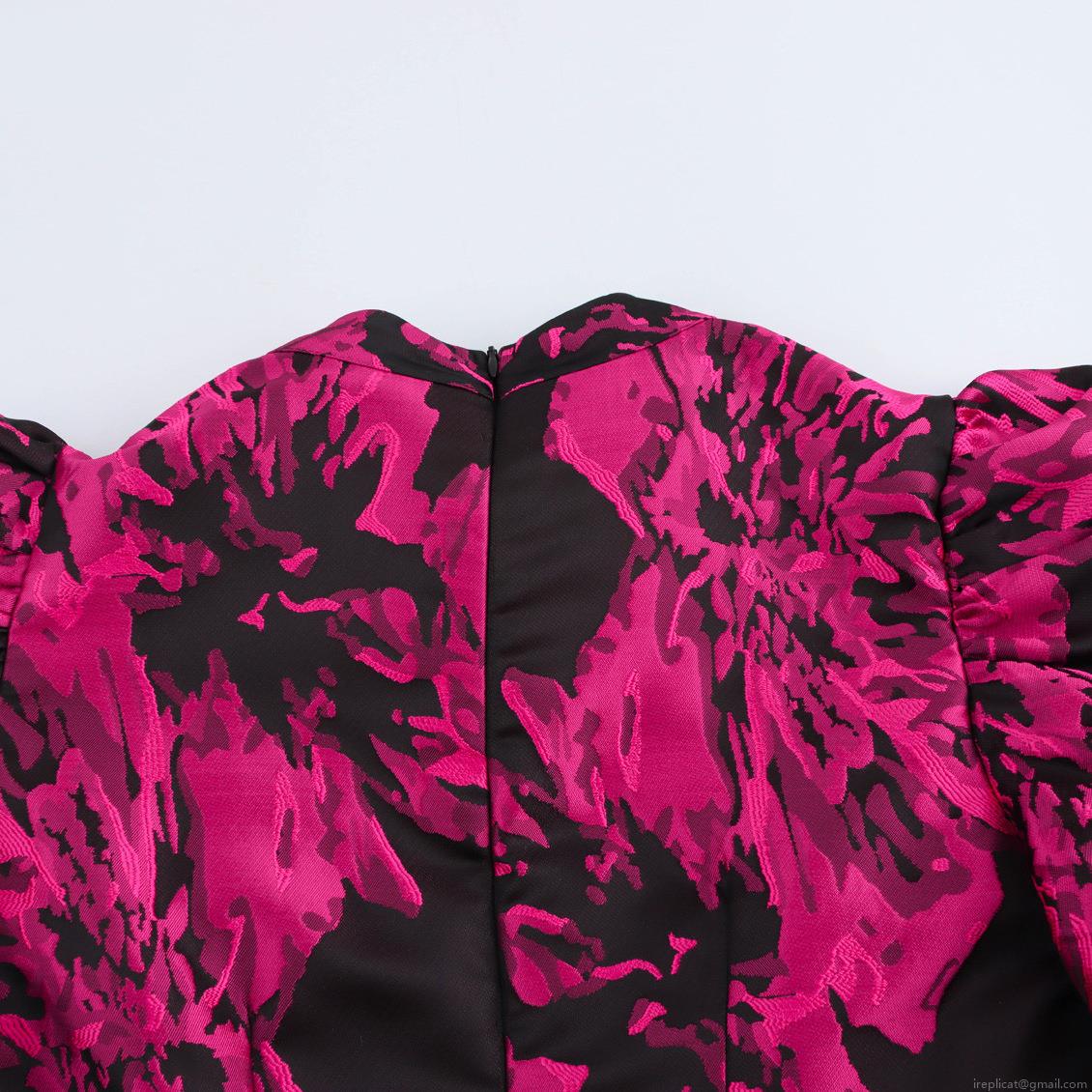 Plants And Flowers, Large Floral Pattern, Puff Sleeves, Jacquard Technique, Invisible Zipper, High-waisted Design