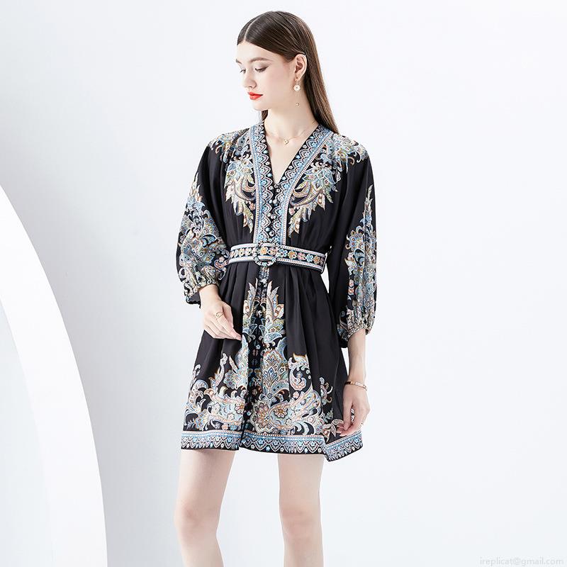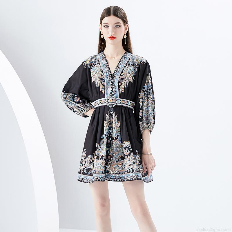 • Women's Retro Paisley Print V-Neck Mini Dress With Waist Belt Boho Ethnic Style Lantern Sleeve Polyester Short Dresses For Spring Vacation Party