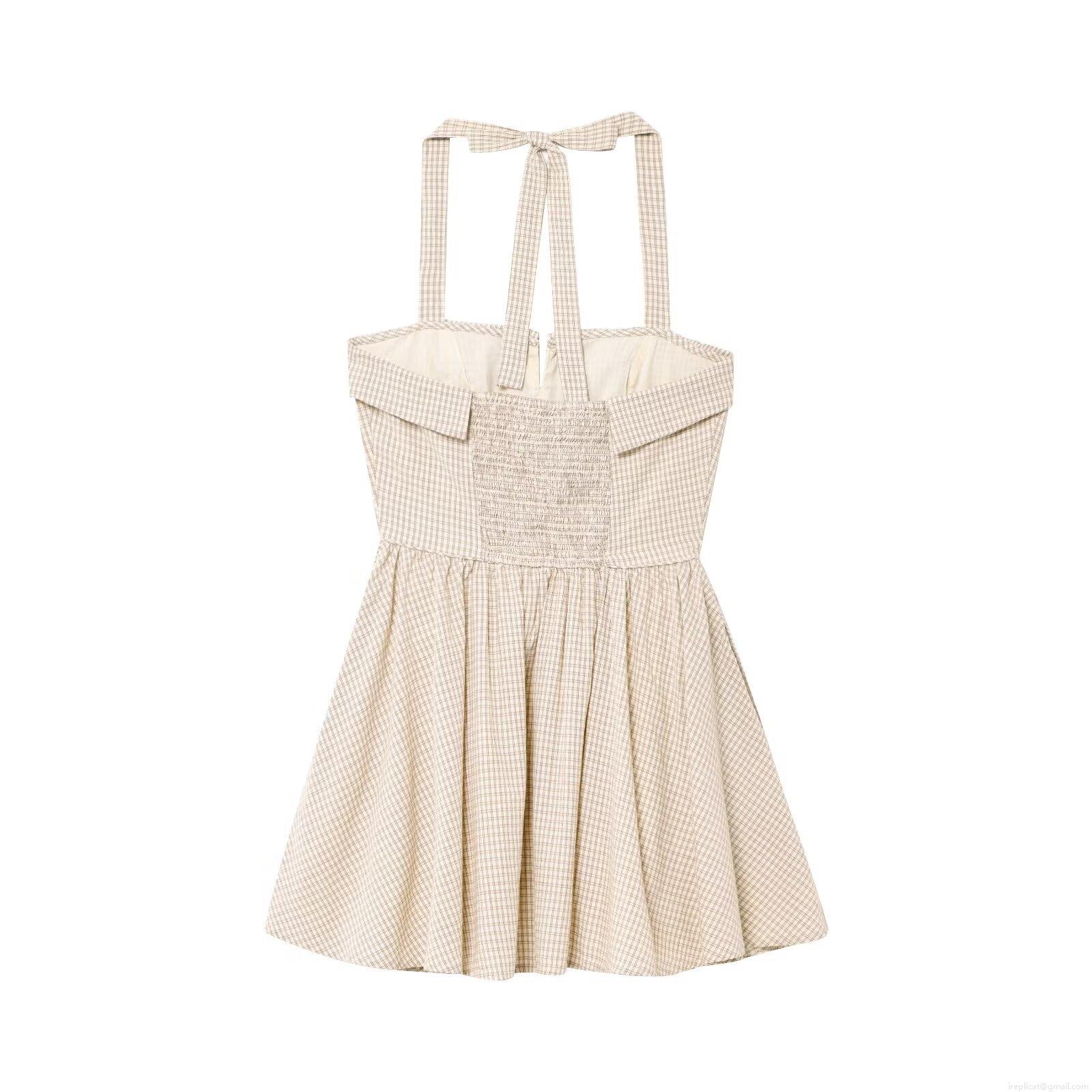 • Women's Retro Plaid Halter Mini Dress Vintage Gingham Button Front Backless A-Line Summer Sun Dress For Party Vacation Socialite Style