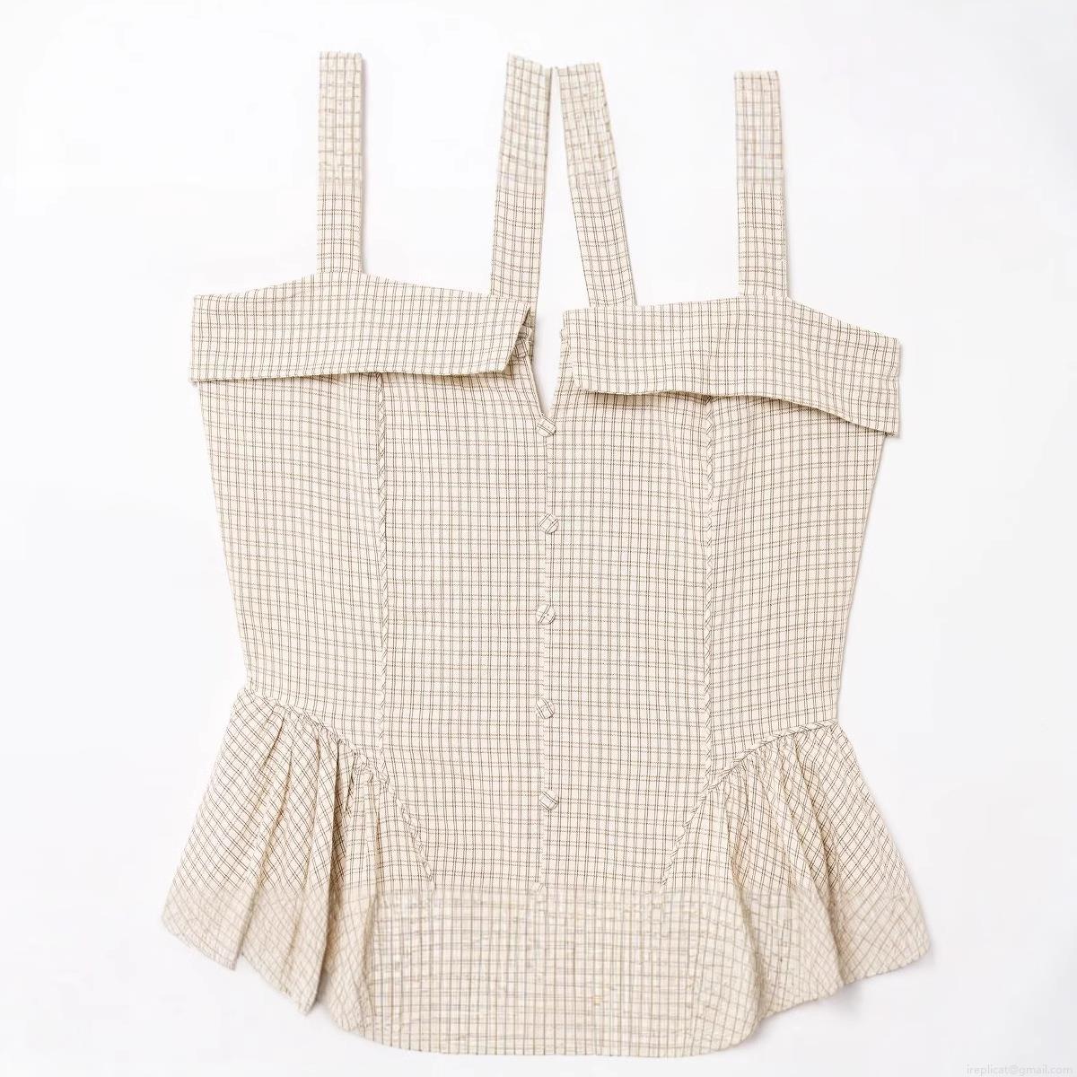 Gingham, Fine Check, Pleats, Buttons, Neckband, Lace, Backless