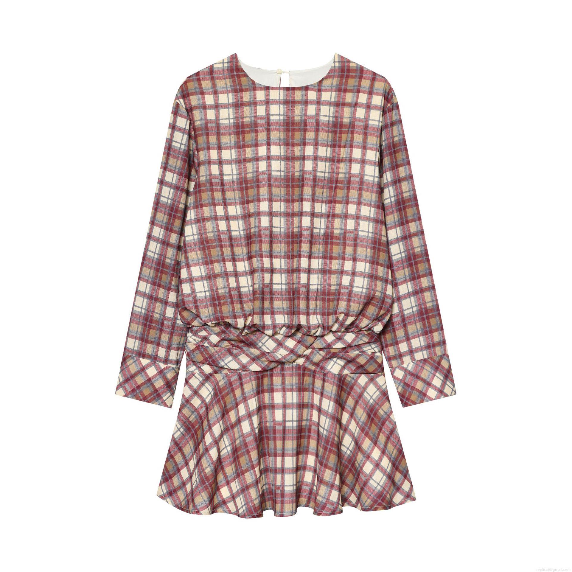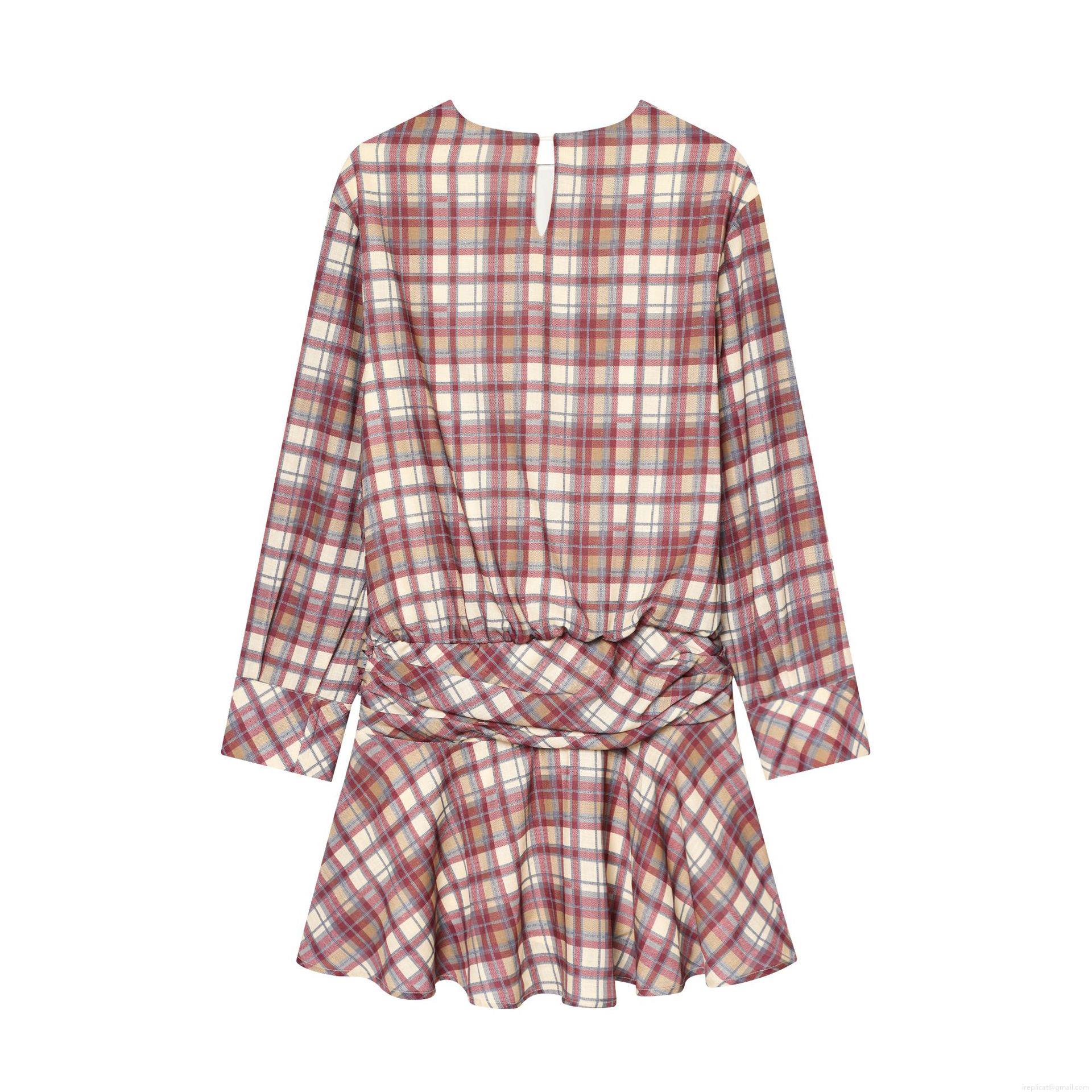 • Women's Retro Plaid Mini Dress Elegant Round Neck Long Sleeve Waist Pleat Crossover A-Line Ruffle Hem Polyester Linen Blend Short Dress For Daily Date Party