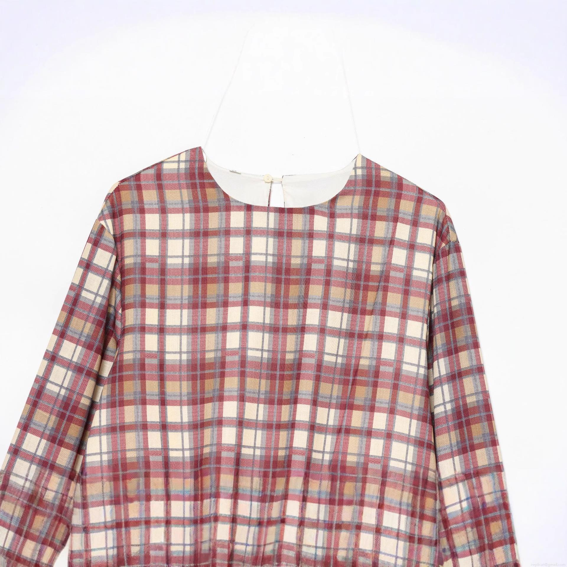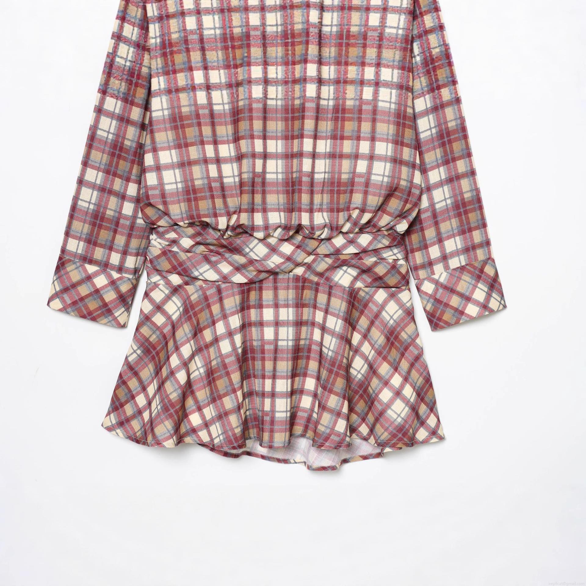 Checkered Pattern, Cross Knot, Fishtail, Pleated Waist