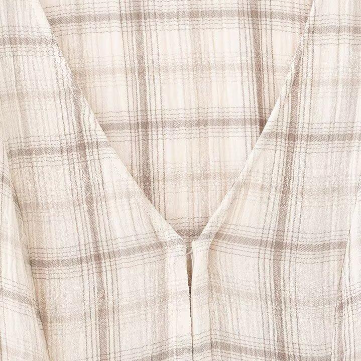Checkered Pattern, Pleats, Waist shaping, V-neck