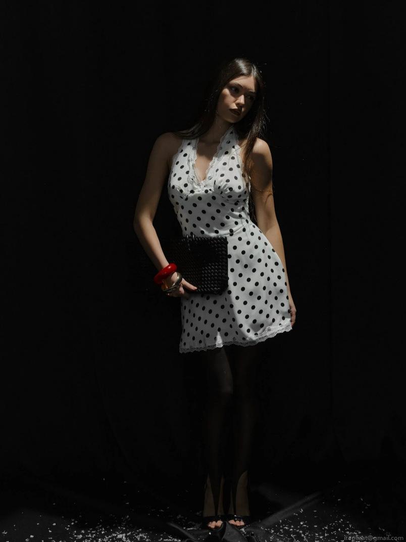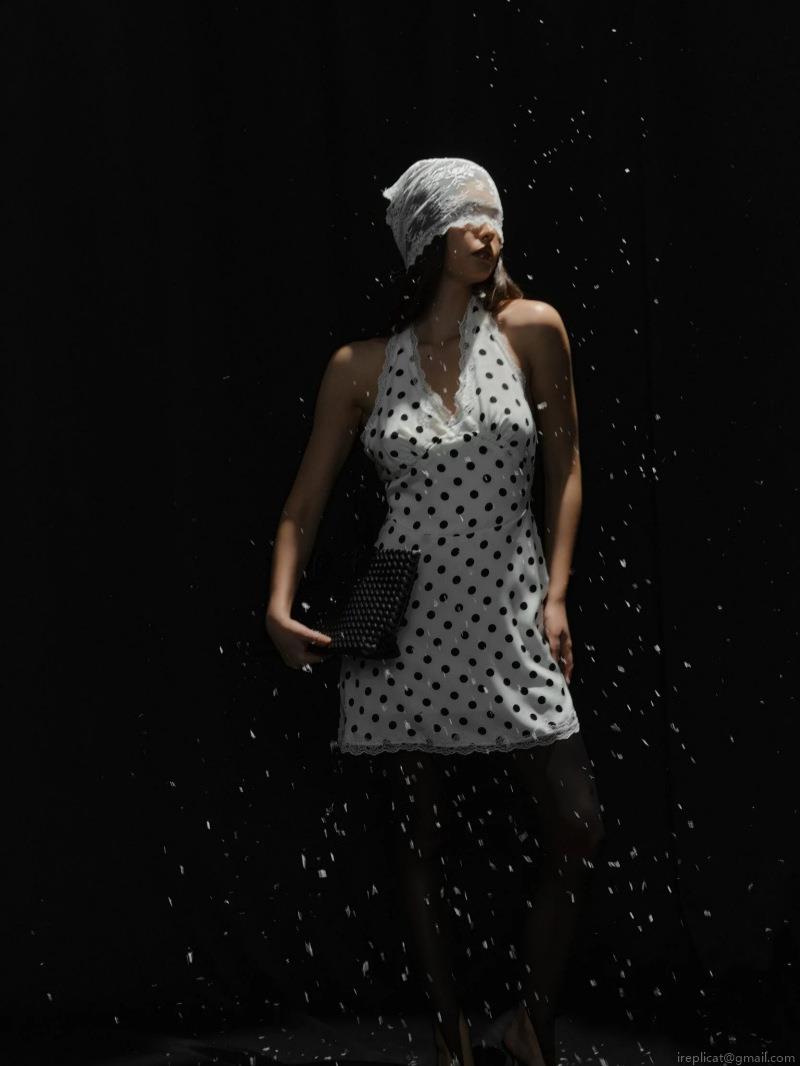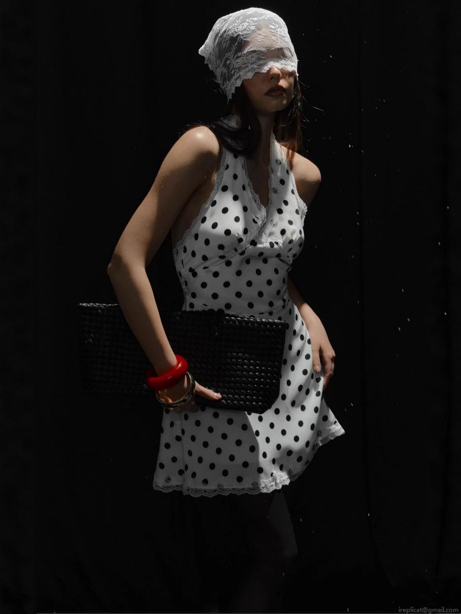Polka Dots, Color Blocking, Hollow Out, Neckband, Lace Trim