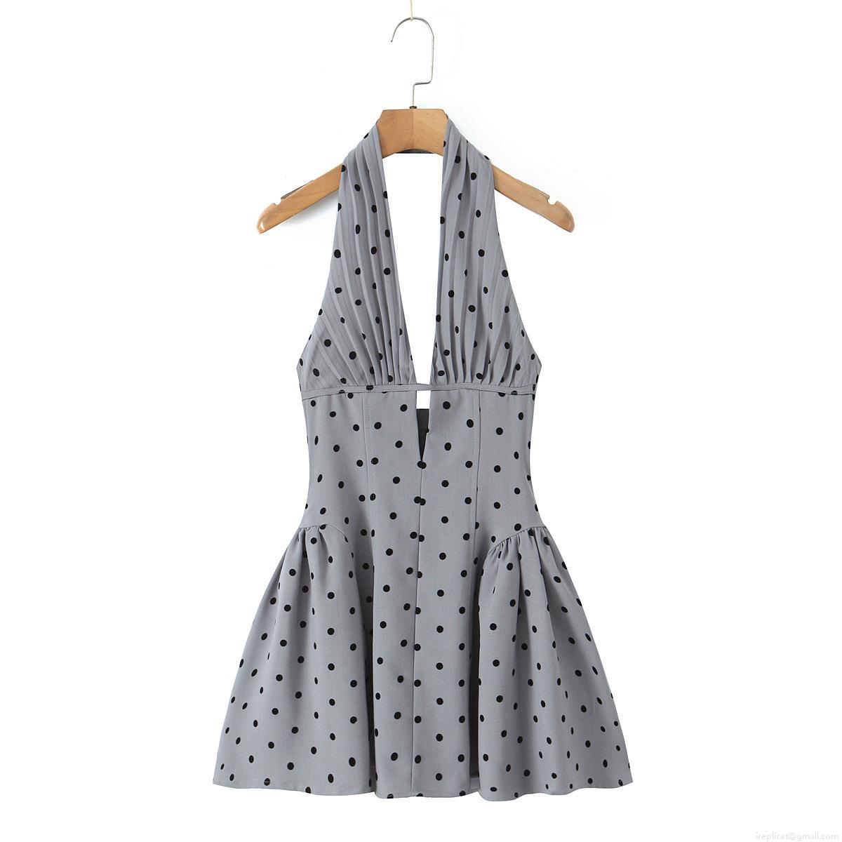 • Women's Retro Polka Dot Halter Mini Dress Sexy Backless Hollow Out A-Line Summer Sundress Polyester Sleeveless Party Vacation Dress
