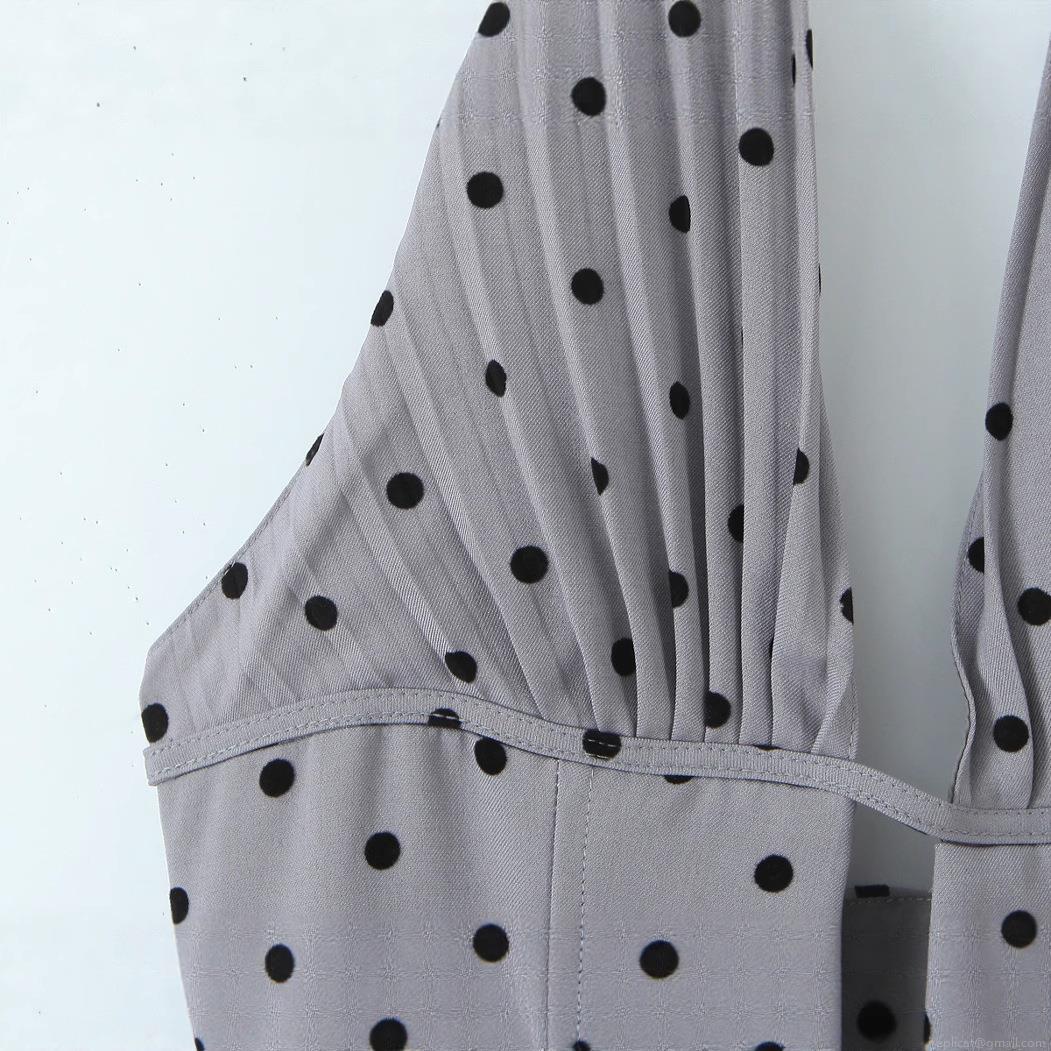 Black Polka Dots, Hollow Out, Pleats, Neckband, Backless