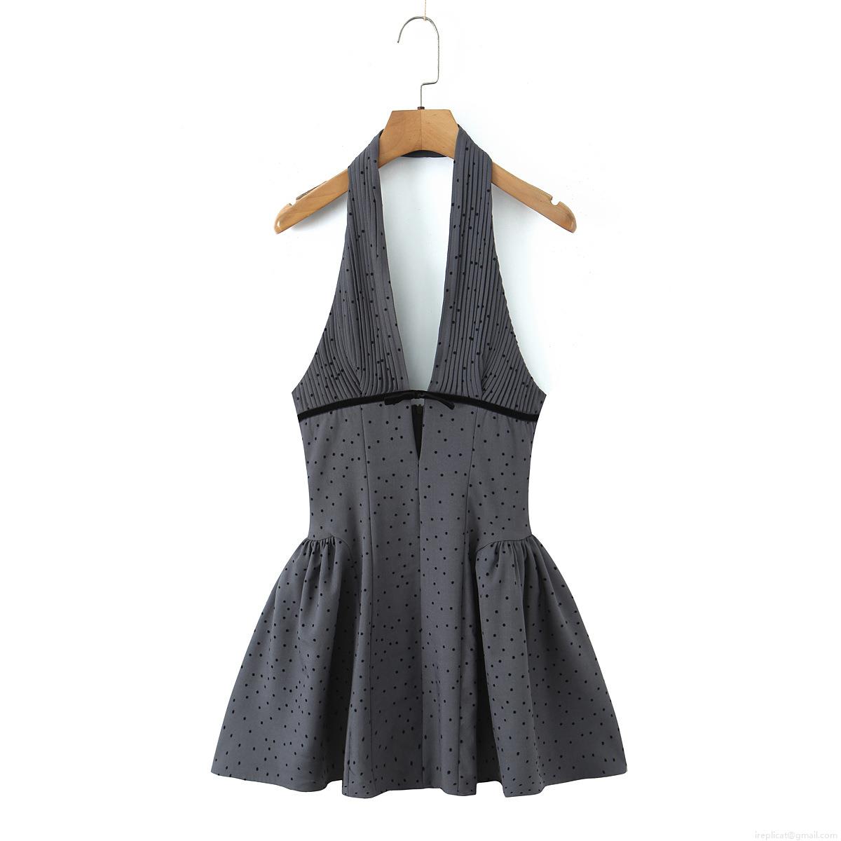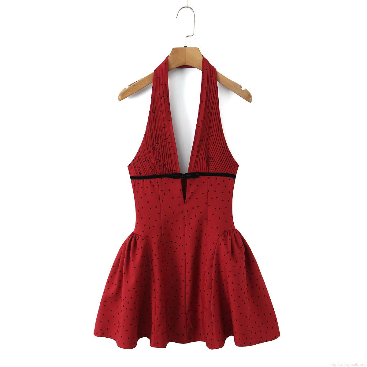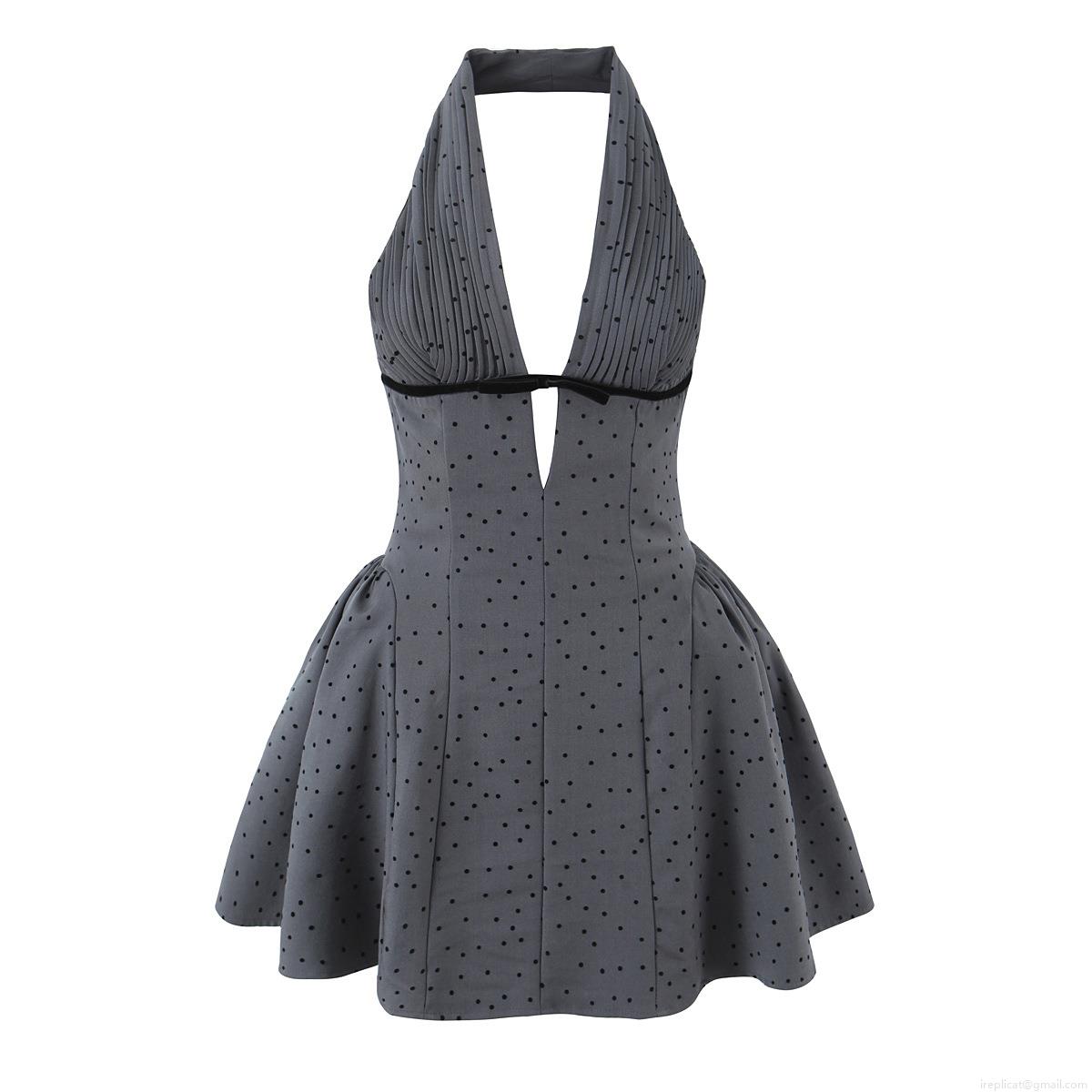 Polka Dots, Bow, Neckband, Backless, Deep V, Accordion Pleats, High-waisted, A-shaped Arrangement