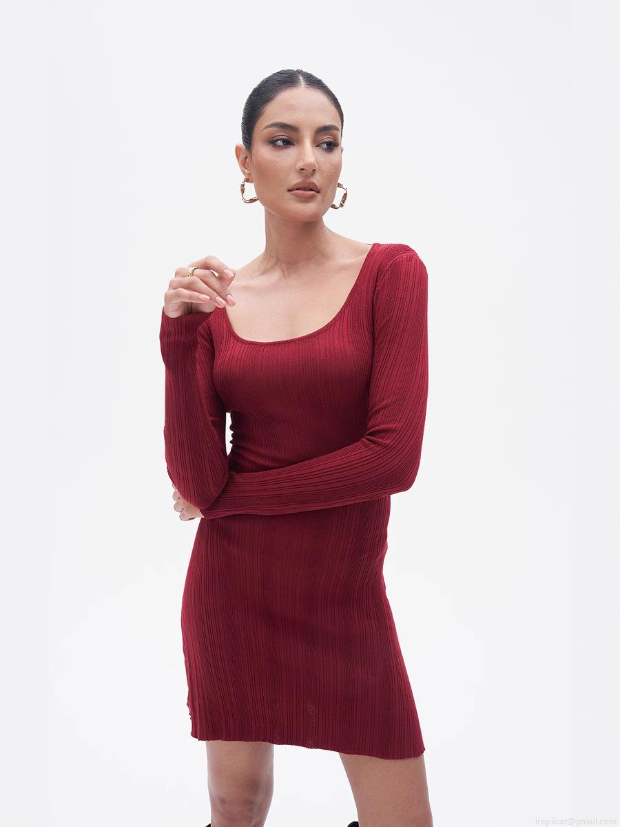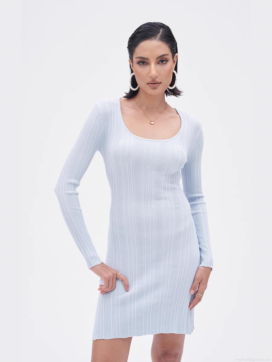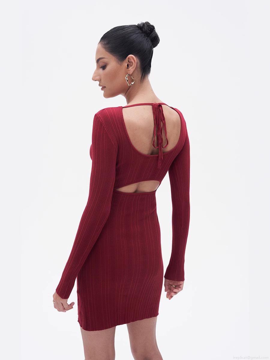 • Women's Ribbed Knit Mini Dress Sexy Cut Out Back Tie Long Sleeve Bodycon Dress High Waist Solid Color Streetwear Party Clubwear Dress
