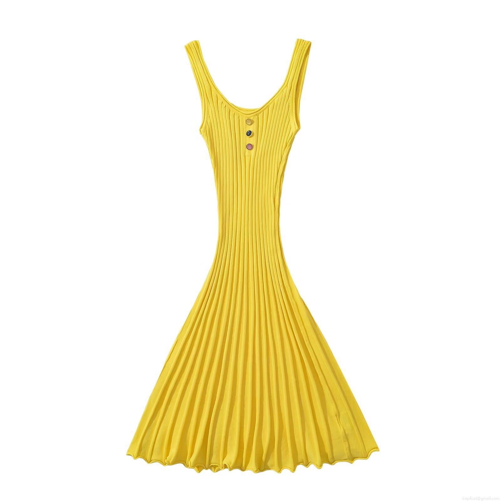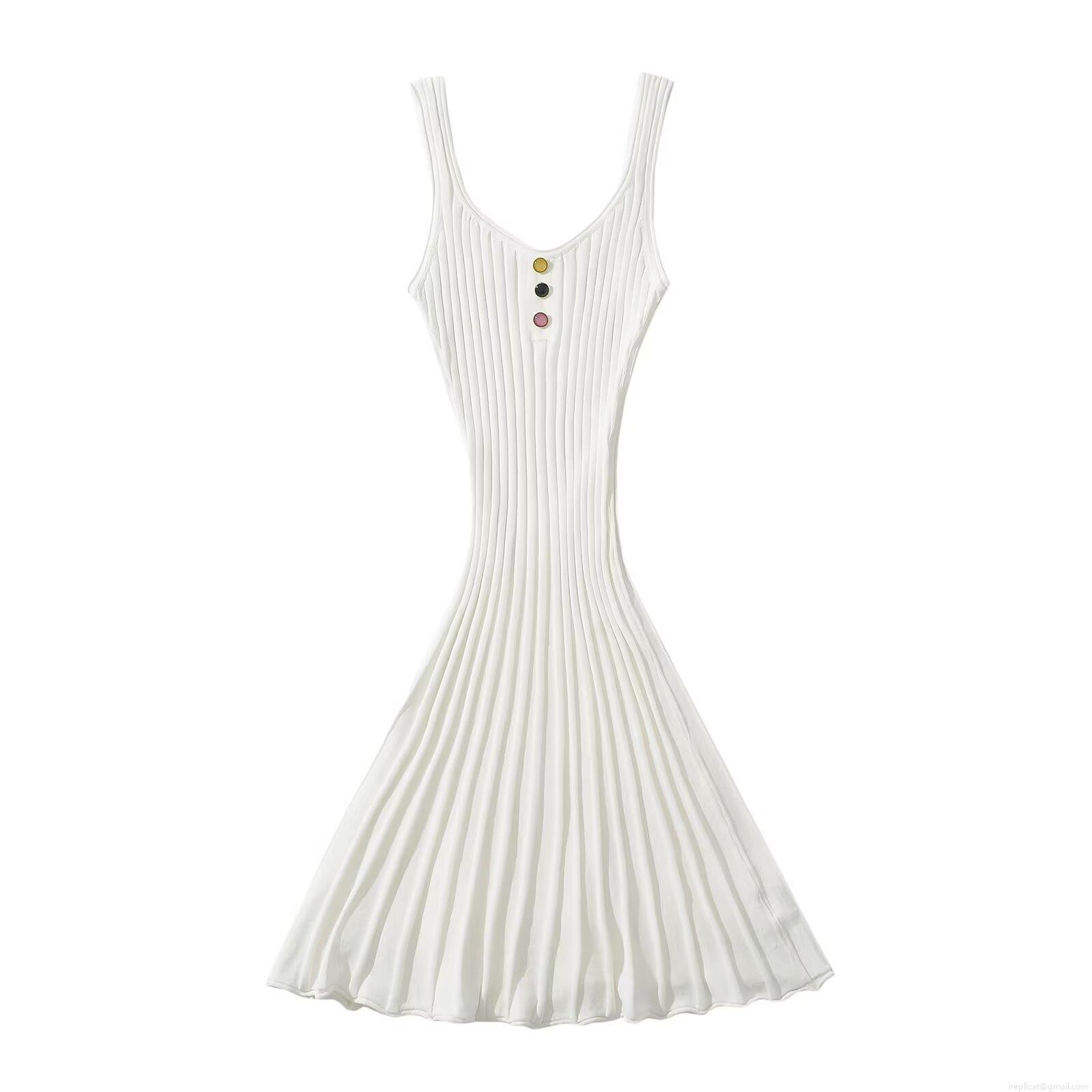 • Women's Ribbed Knit Mini Dress Viscose Nylon Sleeveless U Neck Button Decor Ruffle Hem Bodycon Summer Party Streetwear Casual Short Sun Dress