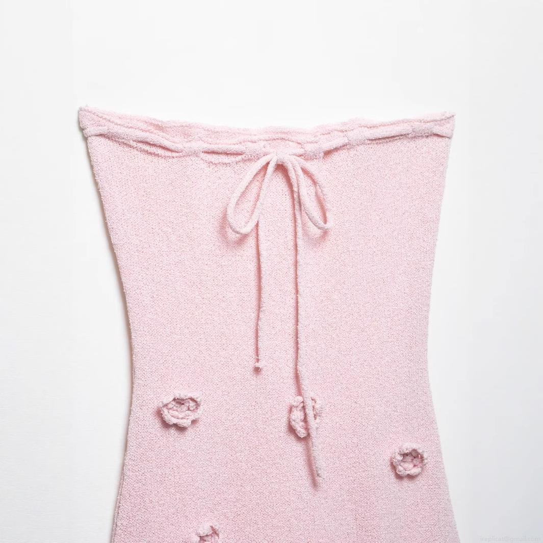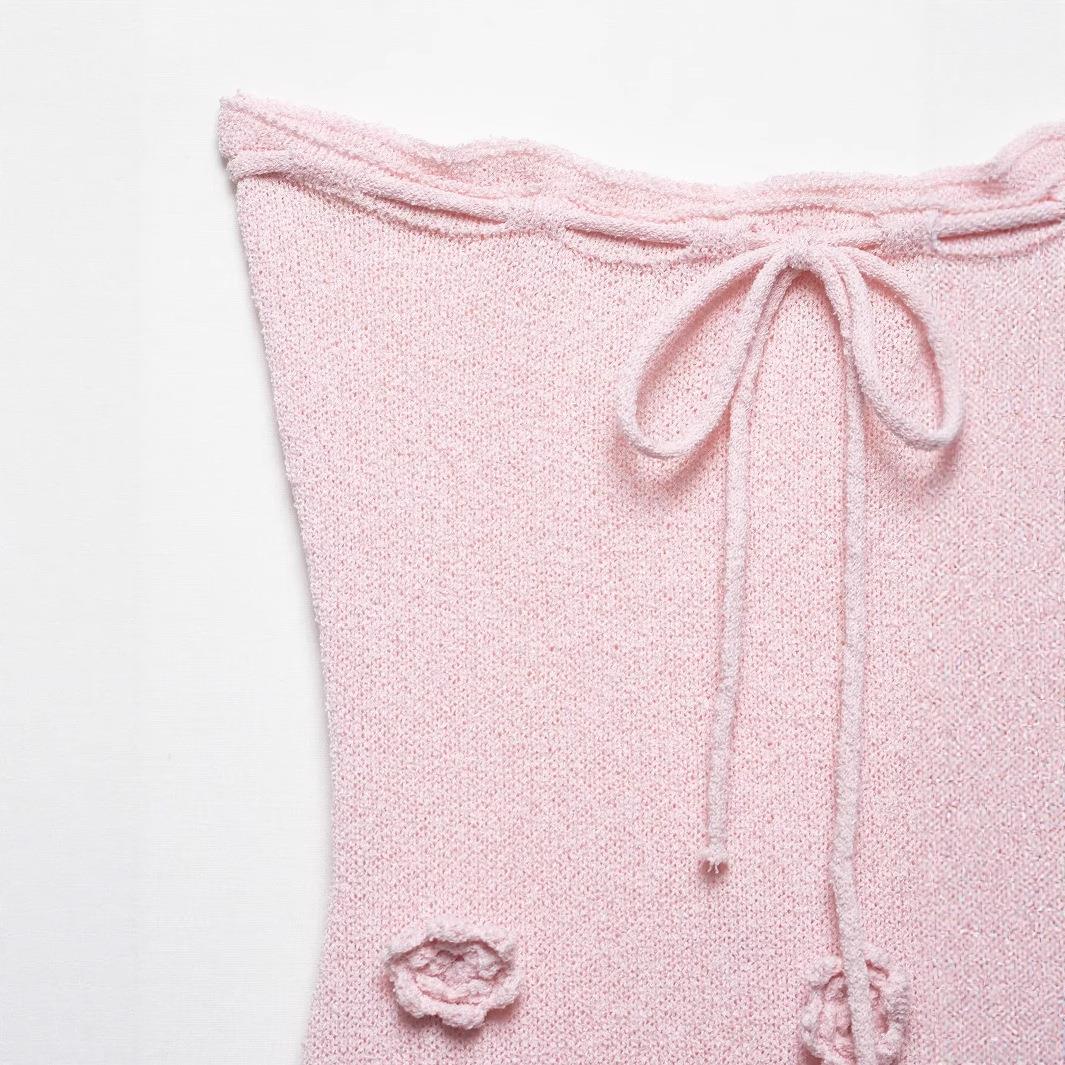 • Women's Romantic Pink Knitted Tube Dress With 3D Floral Applique Elegant Strapless Bodycon Dress For Party Vacation Clubwear