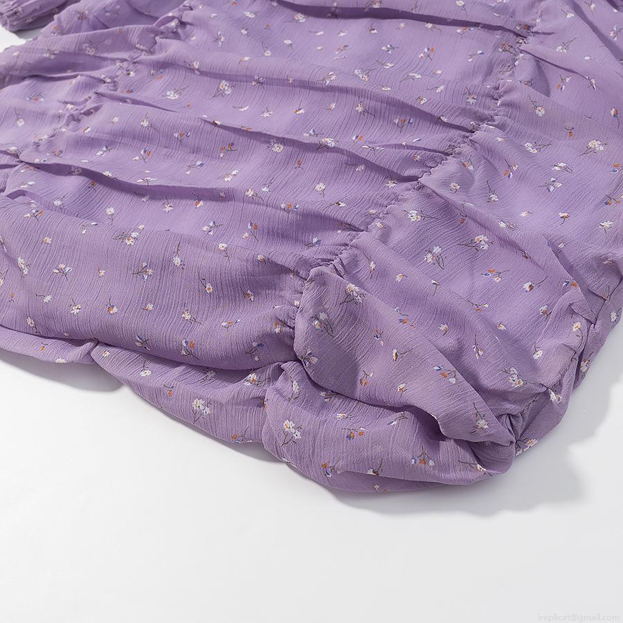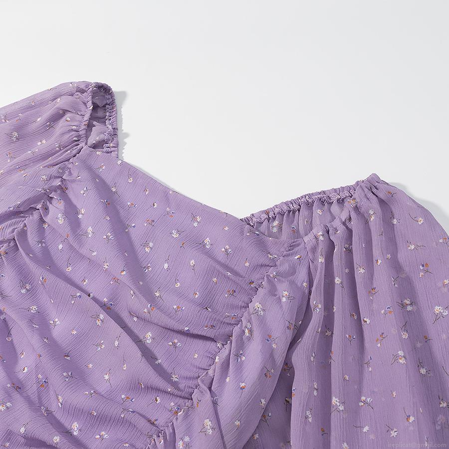 Floral Pattern, Pleats, Puff Sleeves, Square Collar