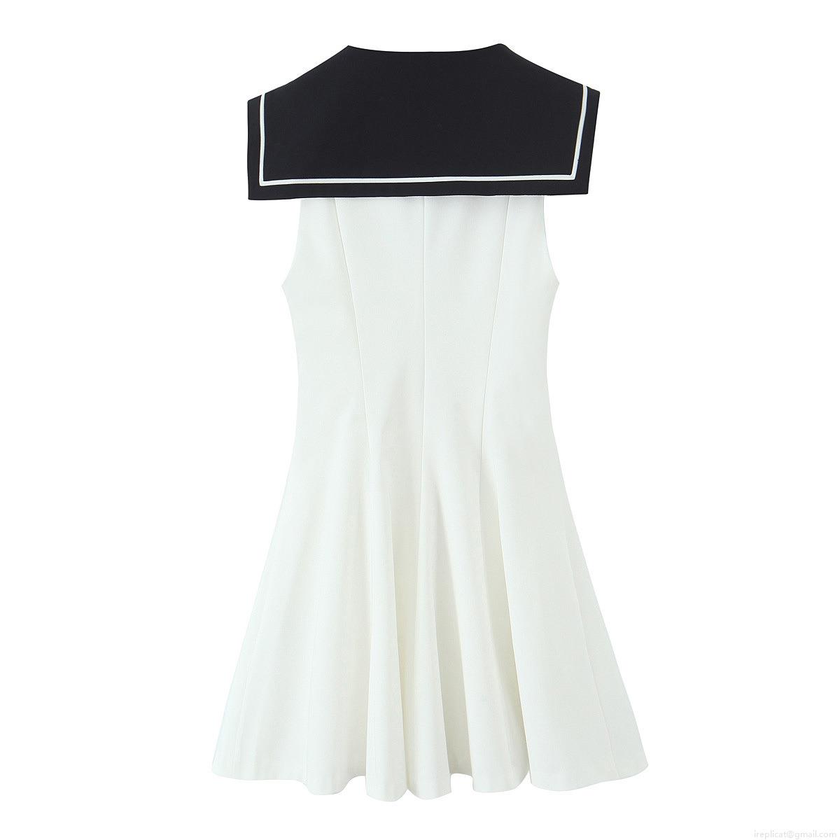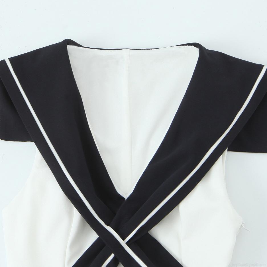 • Women's Sailor Collar Sleeveless Mini Dress Preppy Style V-Neck Spliced A-Line Summer Casual Polyester Dress for Women