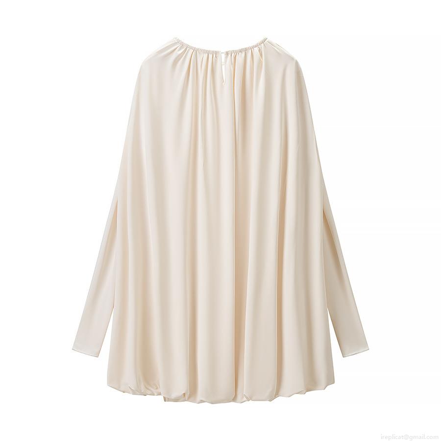 • Women's Satin Pleated Mini Dress Round Neck Cape Long Sleeve Loose Fit Elegant Solid Color Short Dress For Daily Vacation Streetwear Casual
