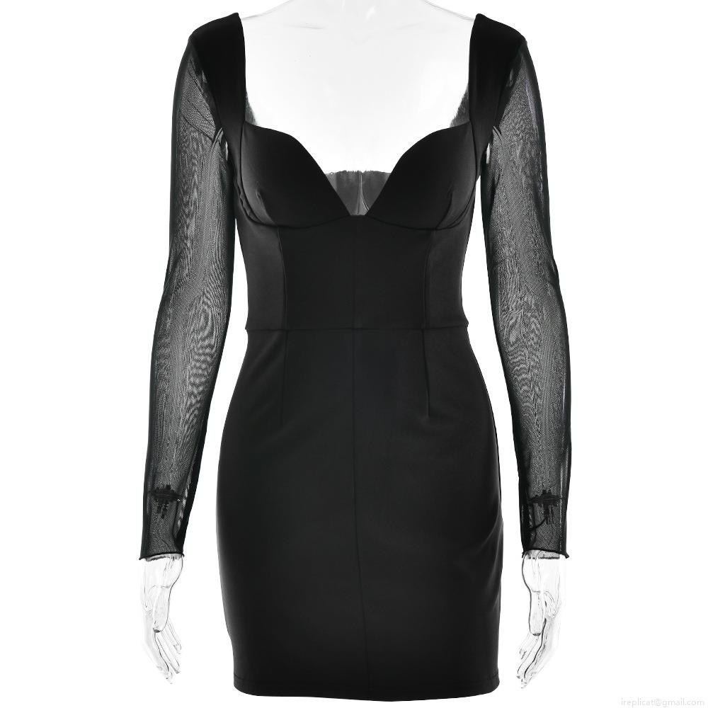 • Women's Sexy Backless Bodycon Mini Dress Mesh Long Sleeve Patchwork V-Neck Slim Fit Party Clubwear Evening Short Dress