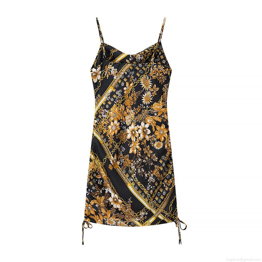 Flowers, Waist shaping, Chain, Printing, Drawstring, Backless