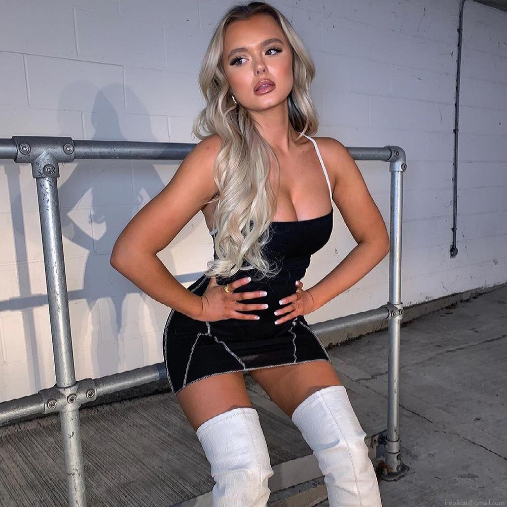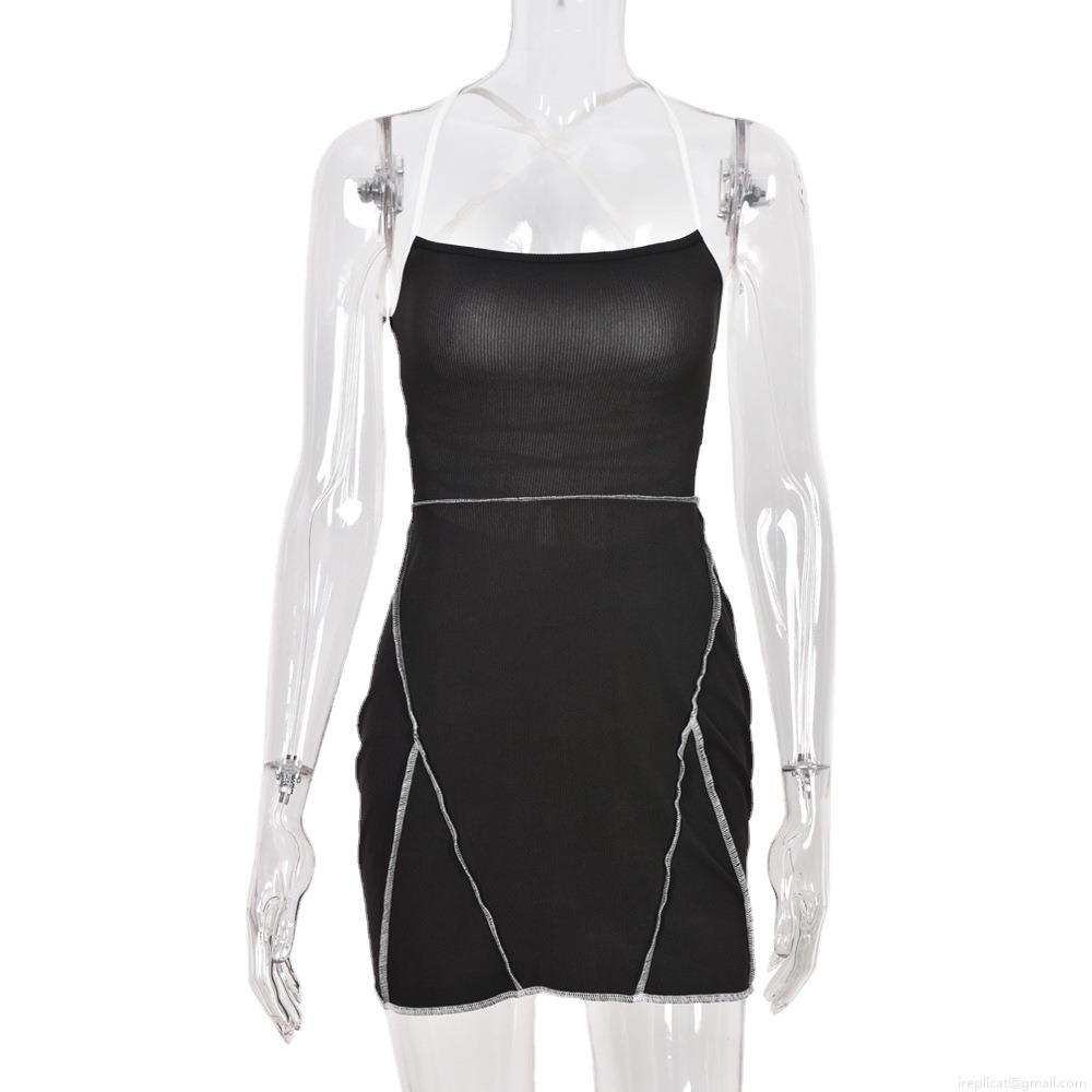 • Women's Sexy Backless Halter Mini Dress Contrast Stitching Ribbed Knit Slim Fit Bodycon Clubwear Party Streetwear Dress