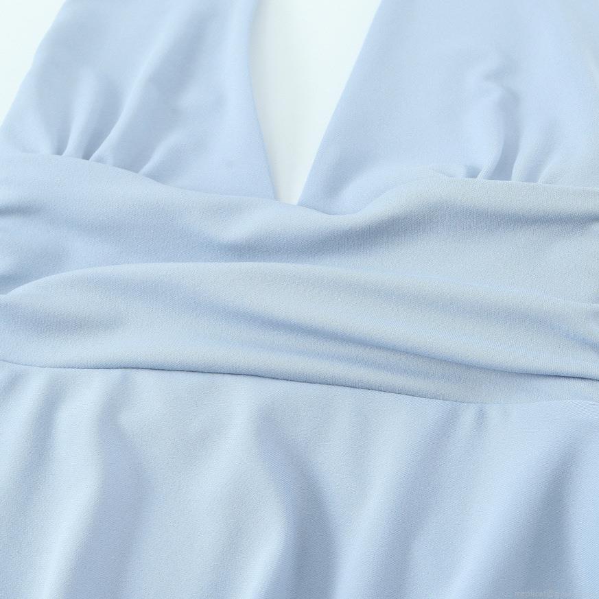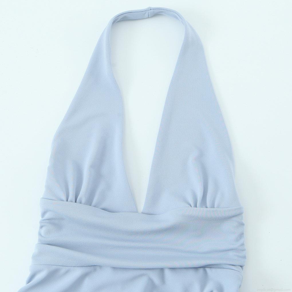 Solid Color, Neckband, Backless, Deep V, Waist-cinching Pleats