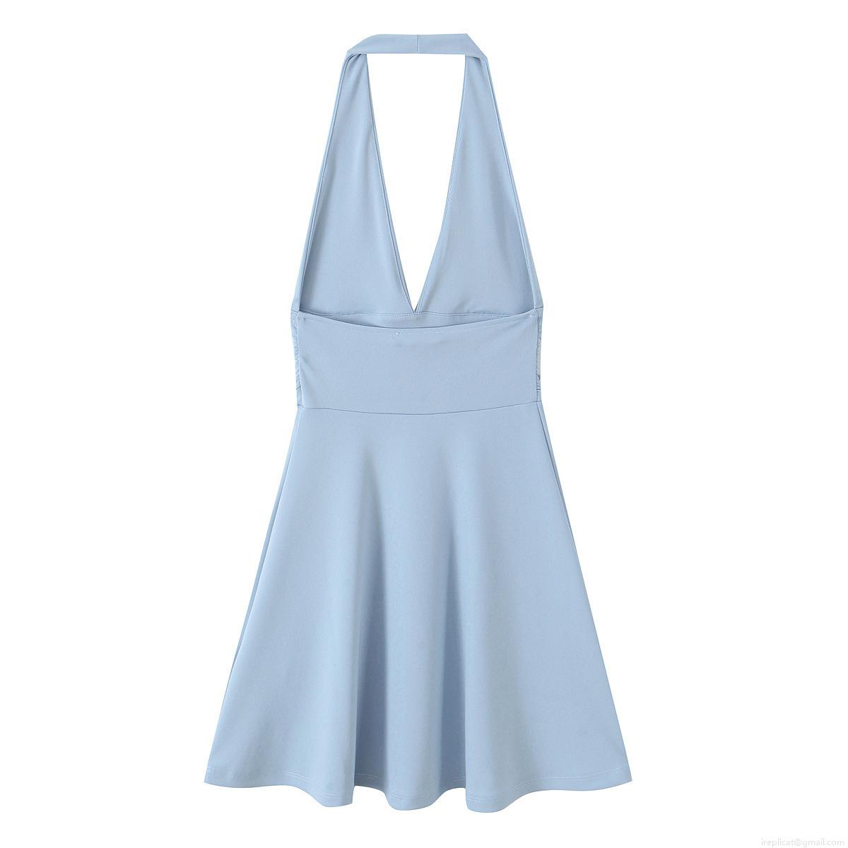 • Women's Sexy Backless Halter Neck Mini Dress Polyester Spandex Deep V-Neck Ruched High Waist A-Line Party Club Sleeveless Short Dress